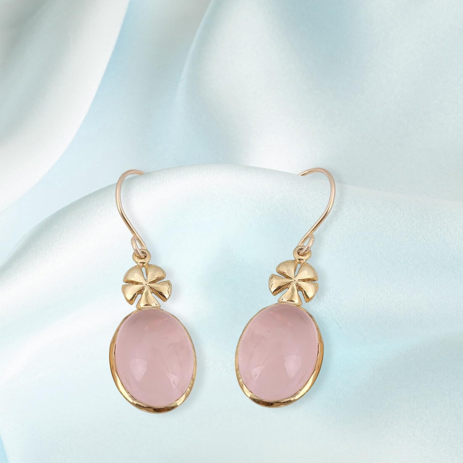 Rose Quartz Earring Designer Fashion Earring Yellow Gold Brass Earring Bohemian Earring mothers day gifts