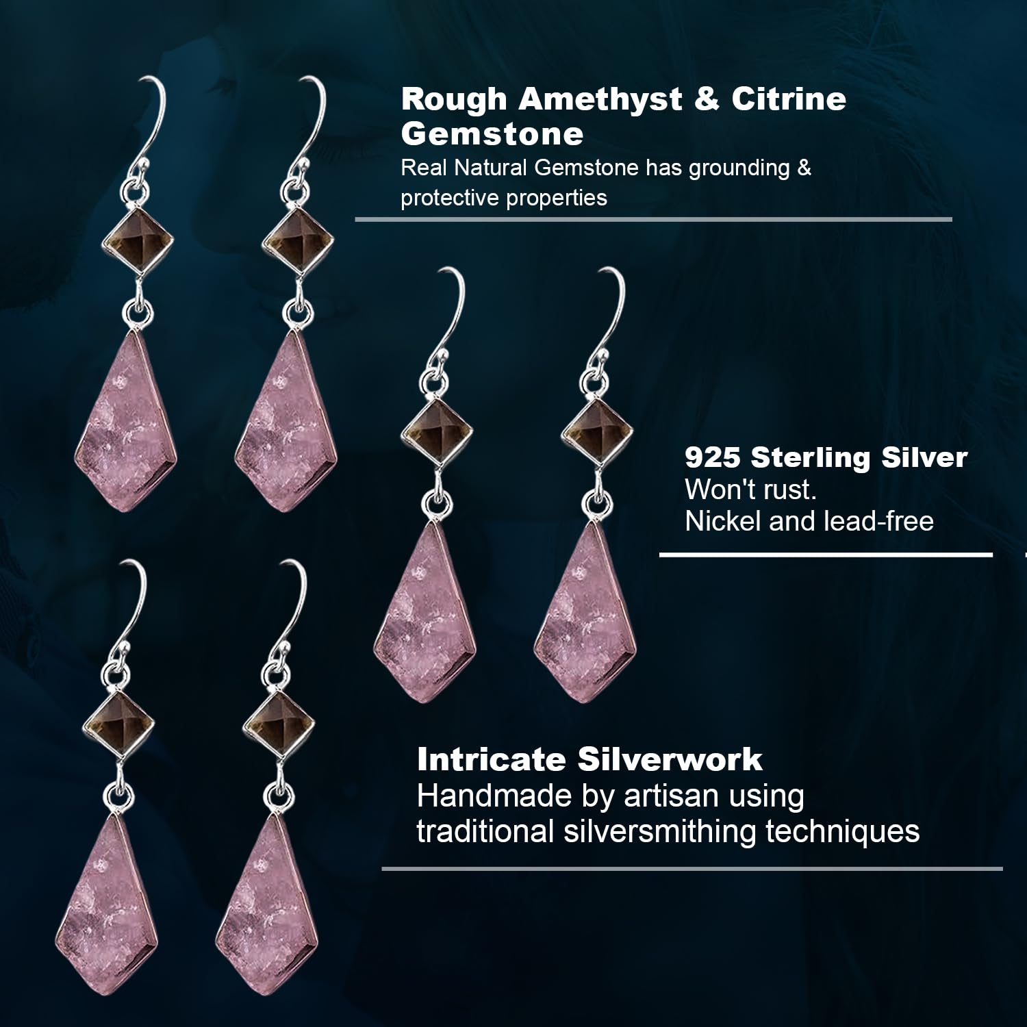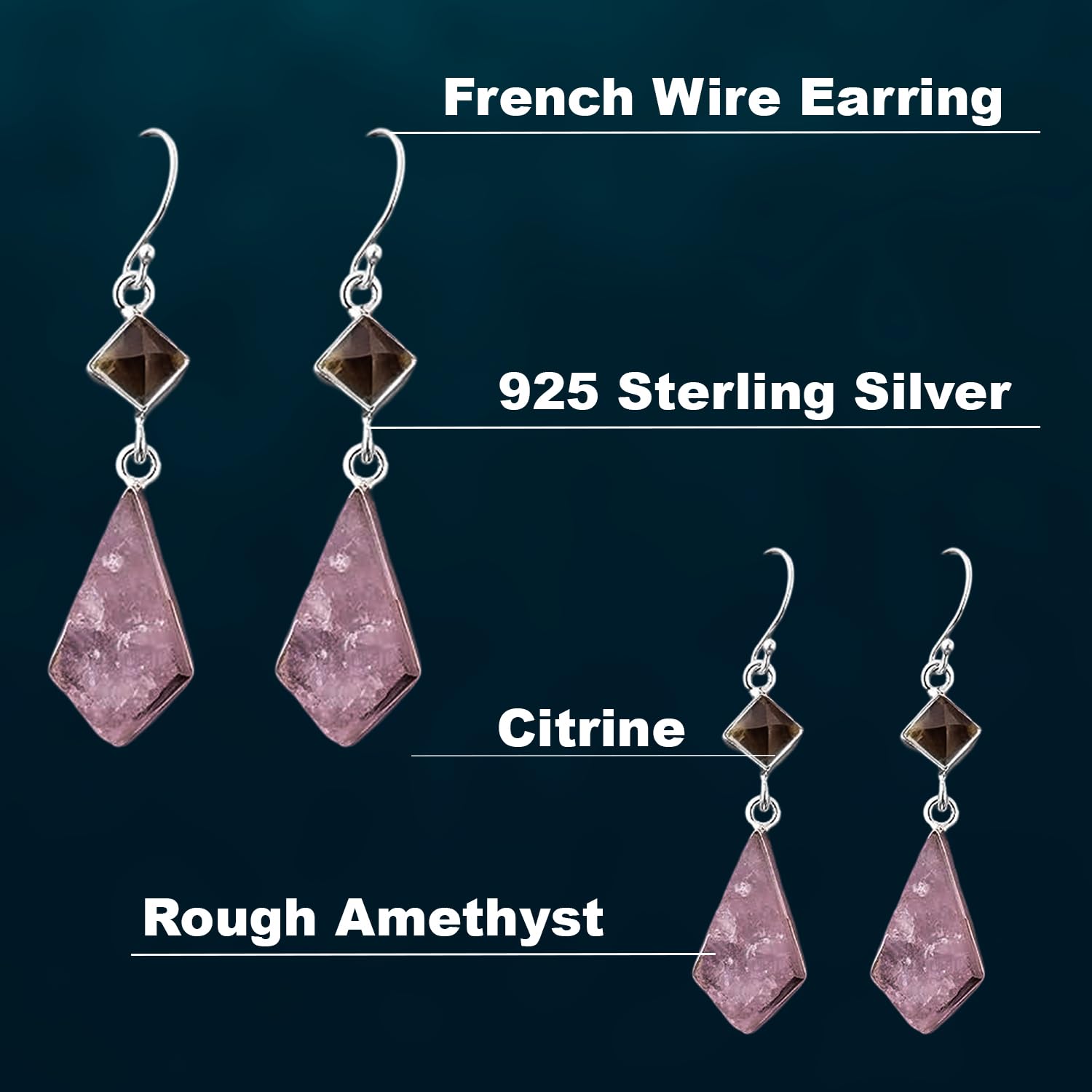 Rough Amethyst & Citrine Earring, Teenage Earring, 925 Sterling Silver Earrings mothers day gifts