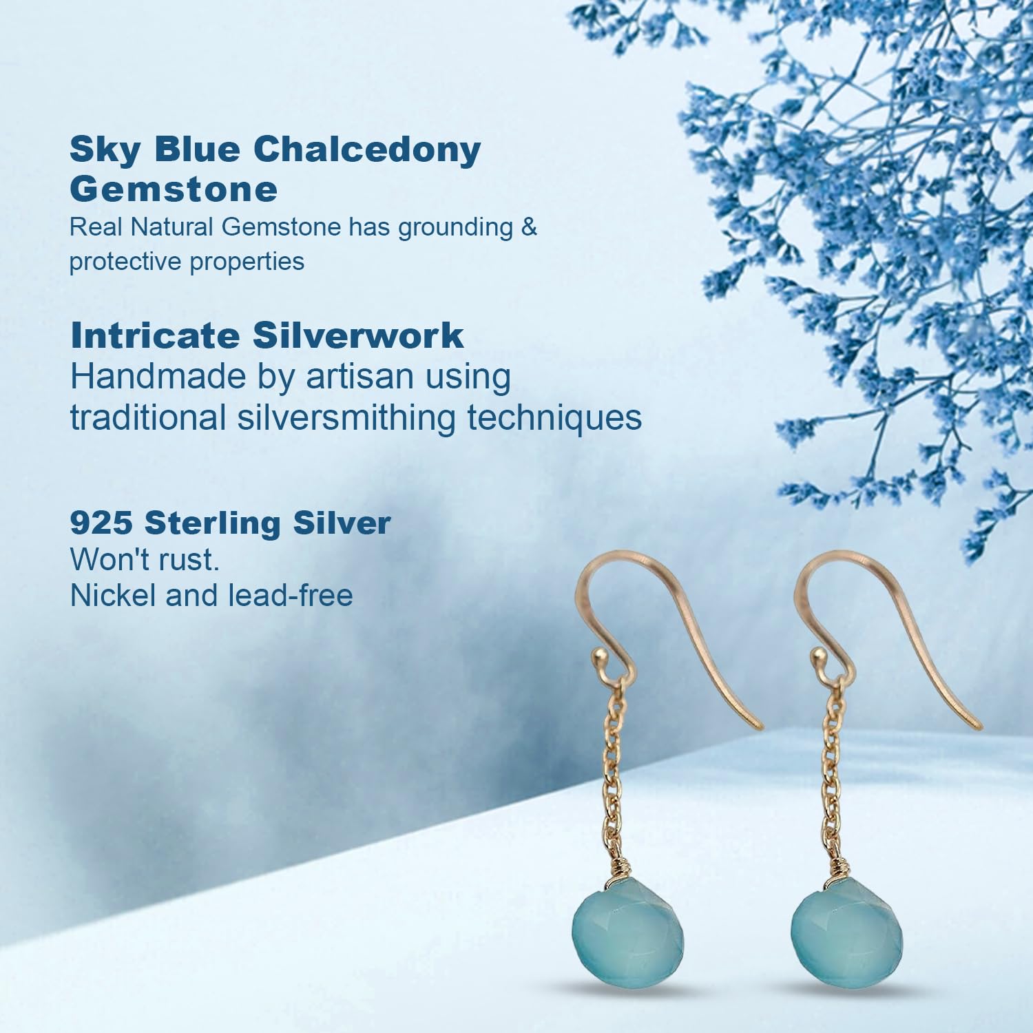 Avoid direct contact with water, perfumes, and harsh chemicals. Store in a dry pouch when not in use.These graceful Sky Blue Chalcedony Earring ?Dangle Earrings in 925 Sterling Silver Earring? Earring bring an elegant drop of calm to your look. Known as the stone of intuition, Amethyst helps soothe the mind and spirit. Handcrafted in Jaipur with ethically sourced stones and artisan techniques, they’re a go-to for special moments or subtle daily sparkle.