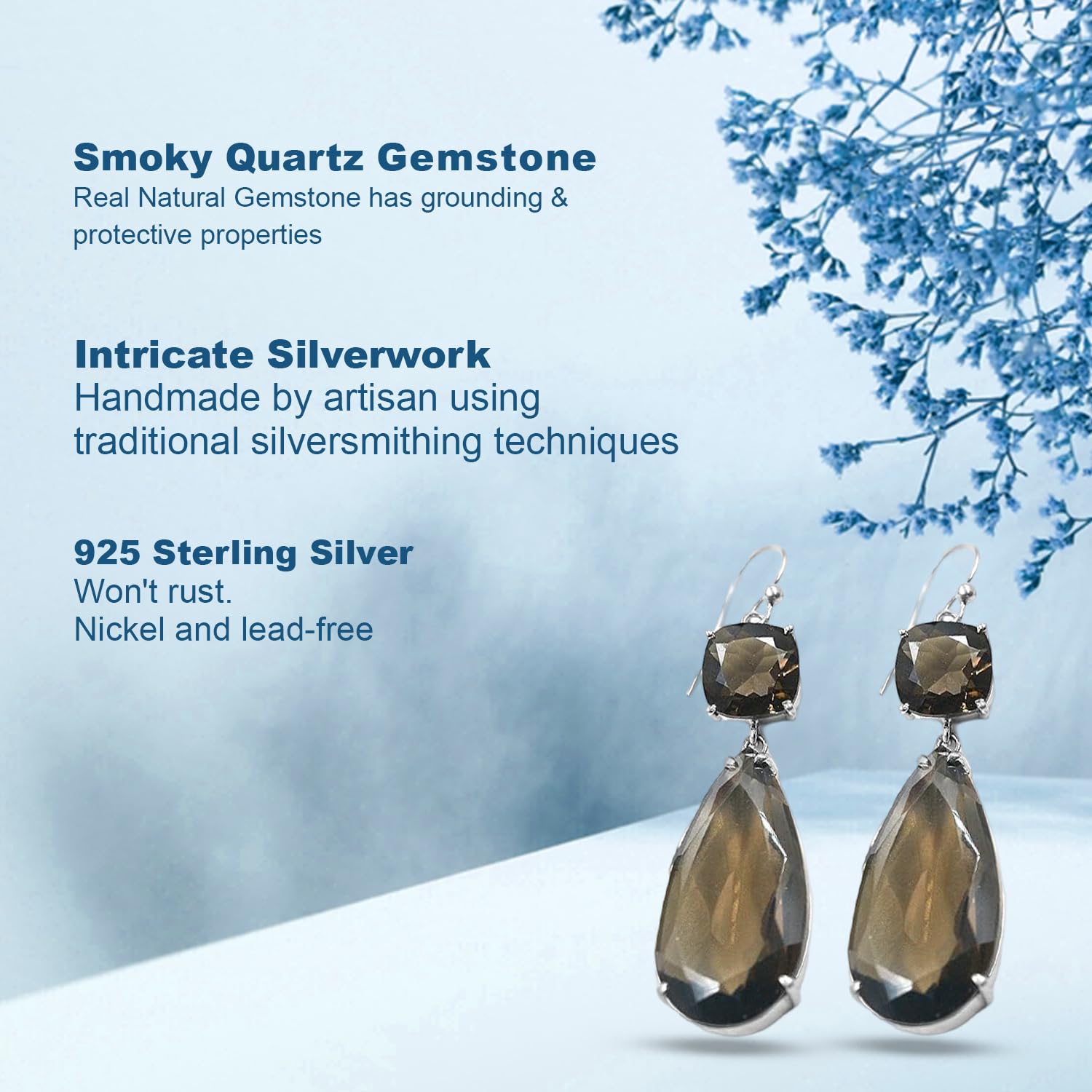 Add movement and magic to your look with these handcrafted Smoky Quartz?Dangle Earrings, made with 925 sterling silver?. Inspired by the elegance of Indian craftsmanship, these earrings beautifully sway with every step?making them perfect for both festive occasions and everyday grace.