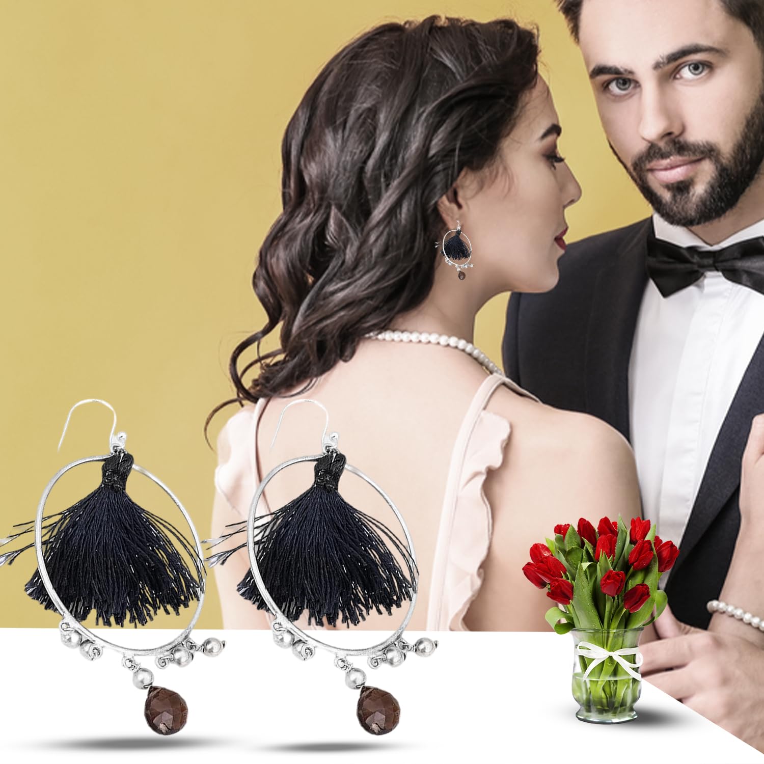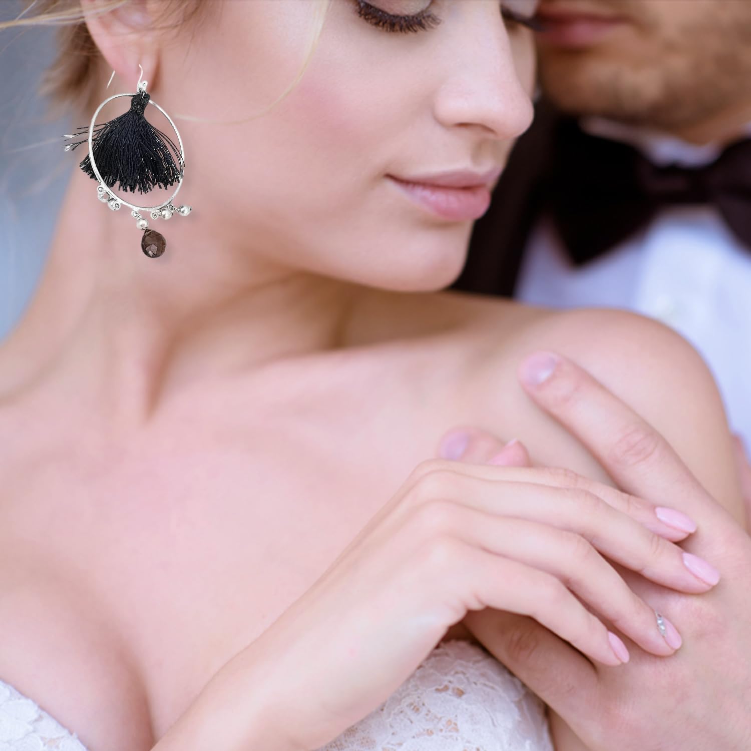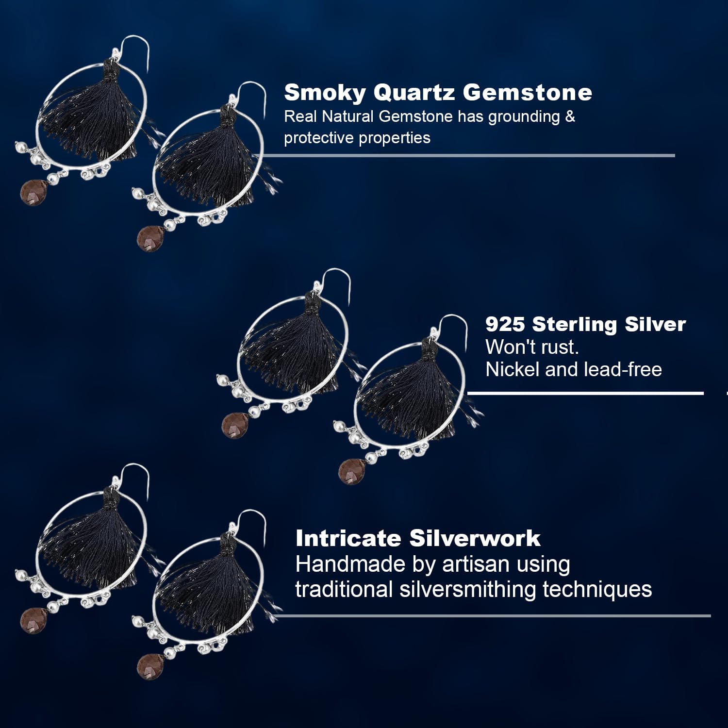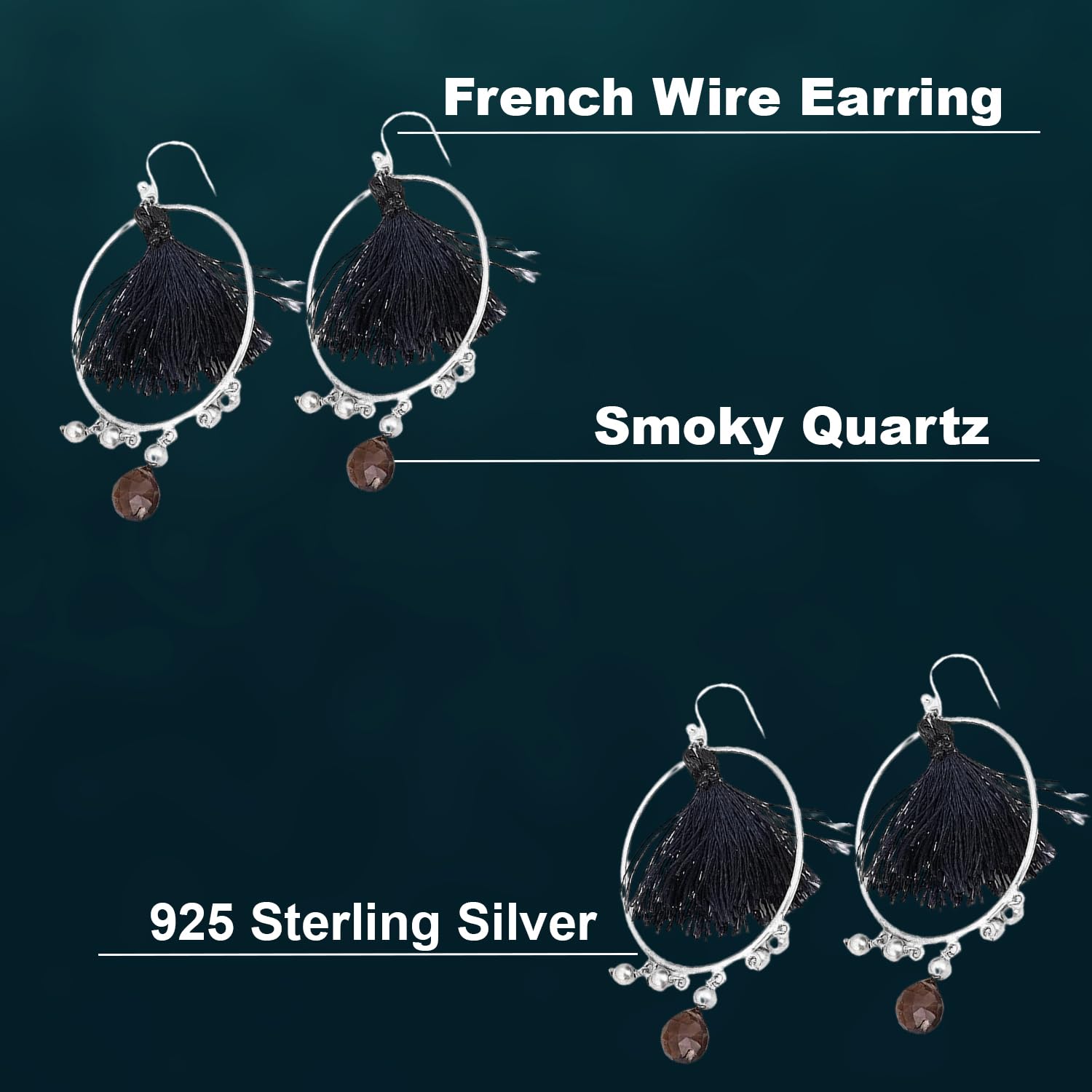 Smoky Quartz earring, thread latkan earring,925 Sterling Silver Earring, Statement Earrings mothers day gifts