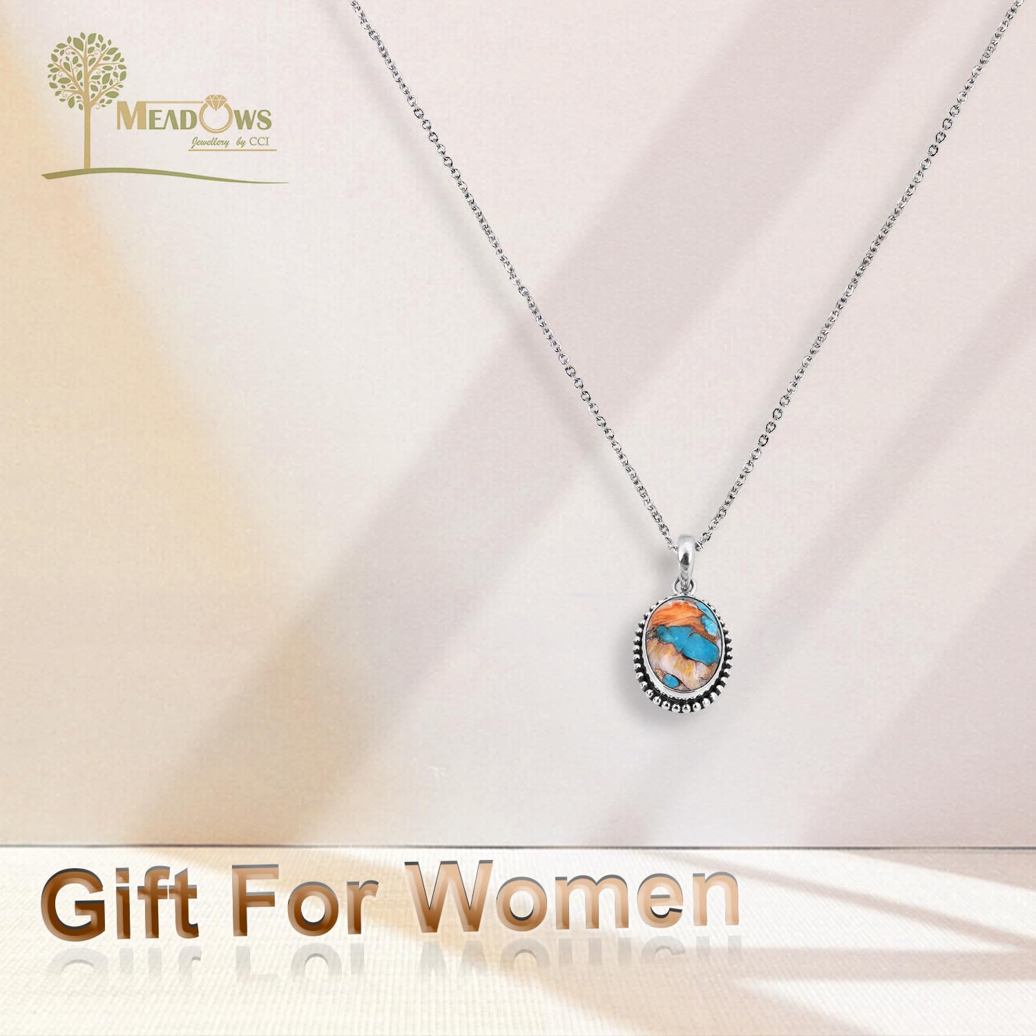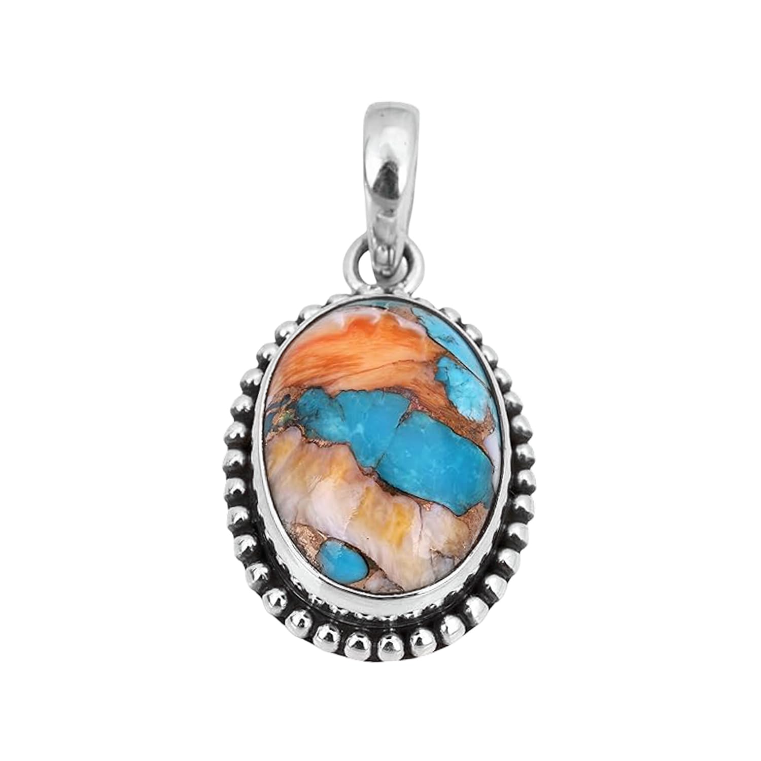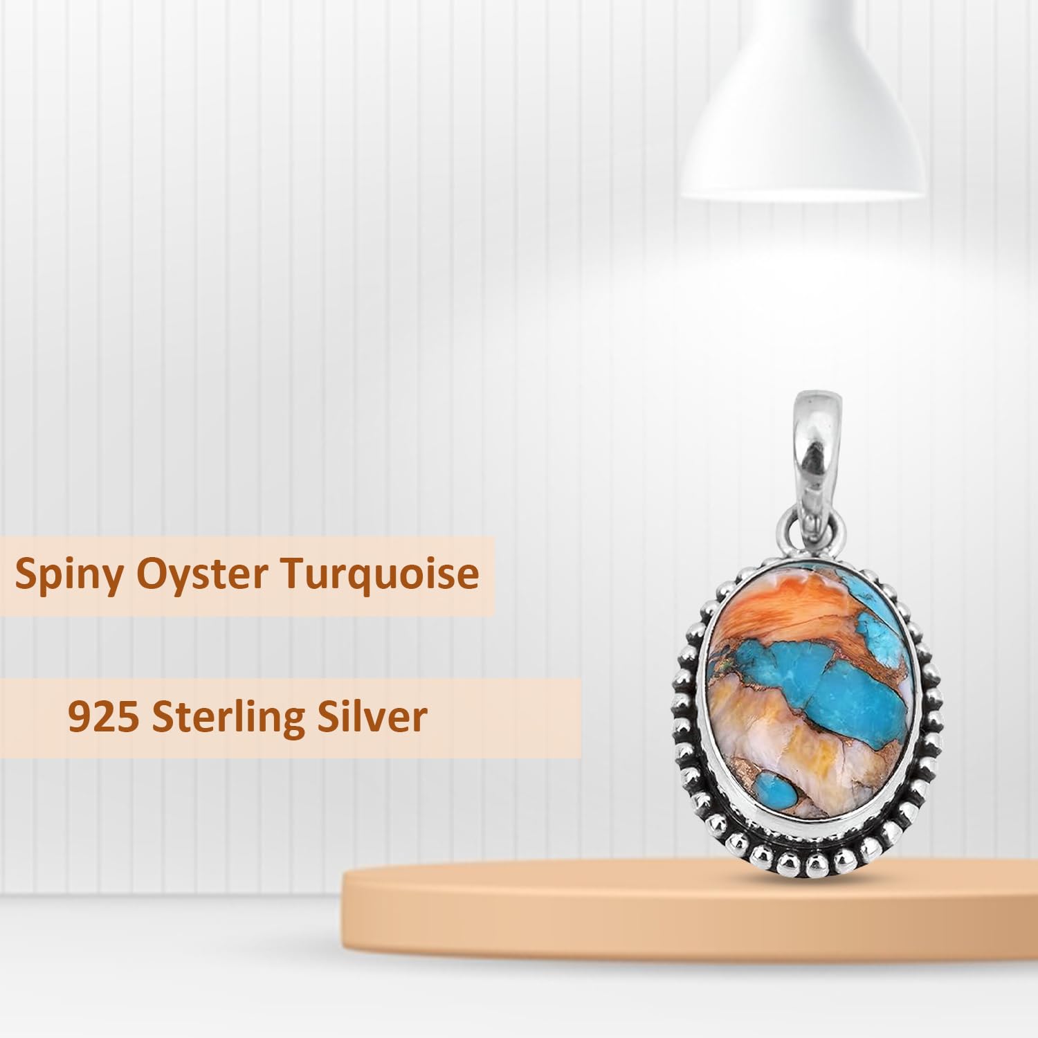 Spiny Oyster Turquoise Pendant, 925 Sterling Silver Pendant Bohemian Jewelry