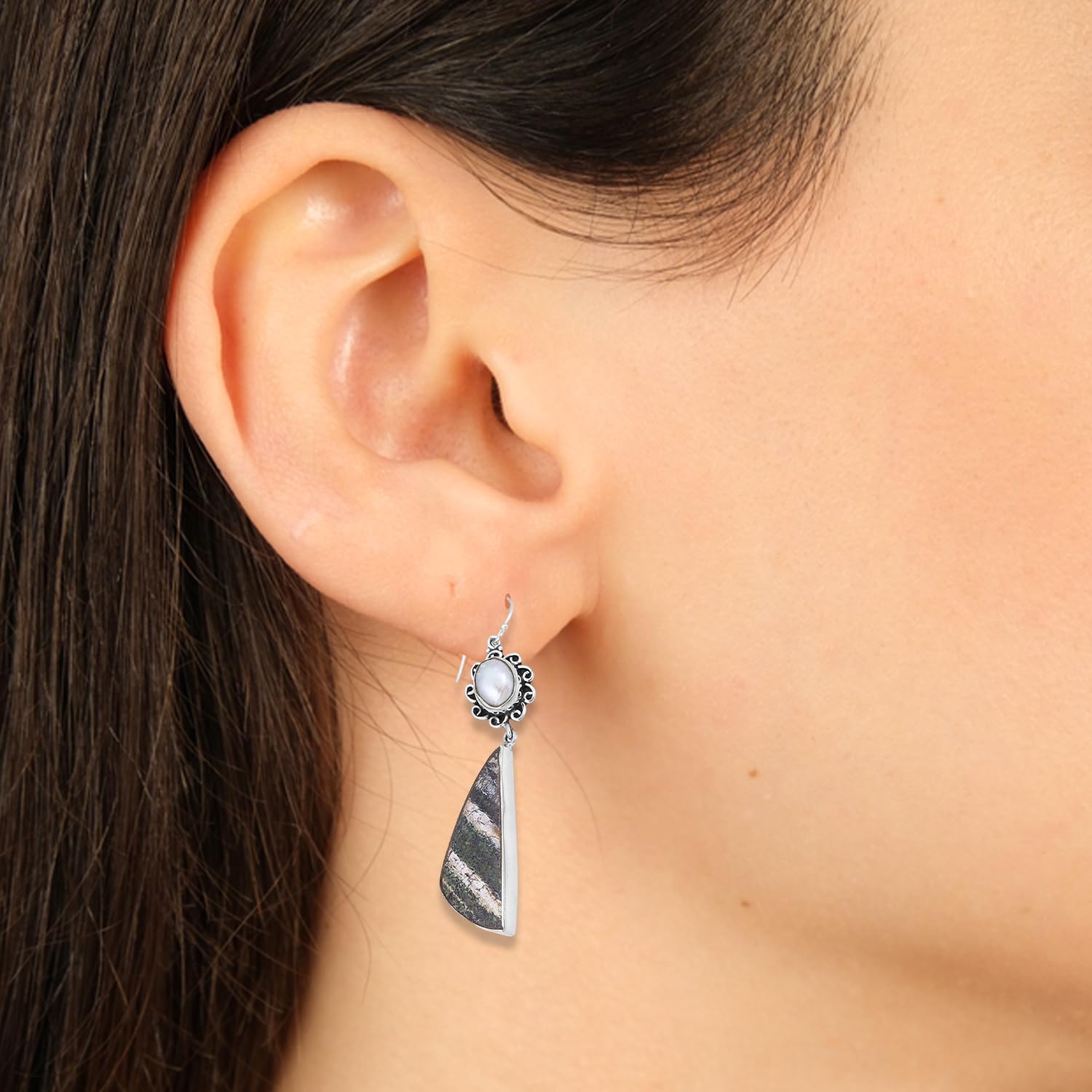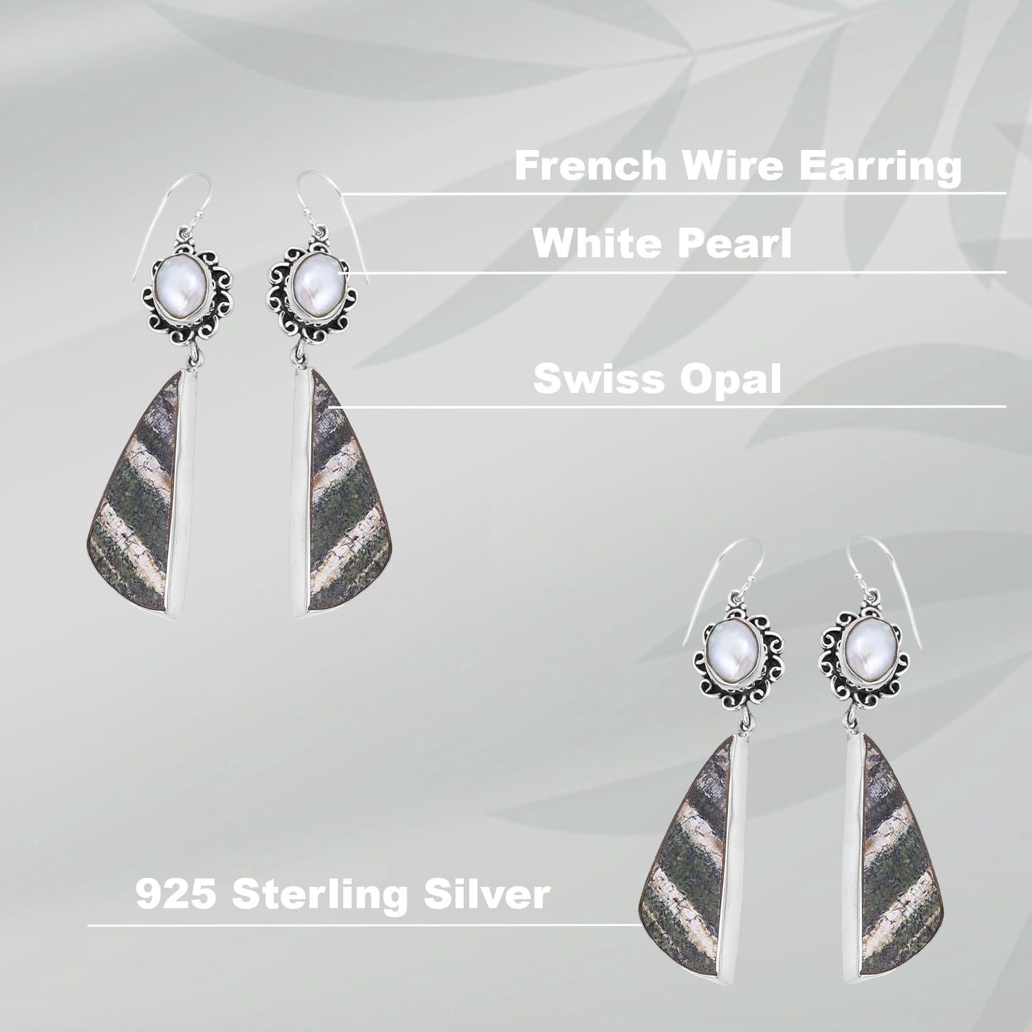 Add movement and magic to your look with these handcrafted Swiss Opal & White Pearl Dangle Earring?made with 925 Sterling Silver Earring??. Inspired by the elegance of Indian craftsmanship, these earrings beautifully sway with every step?making them perfect for both festive occasions and everyday grace.