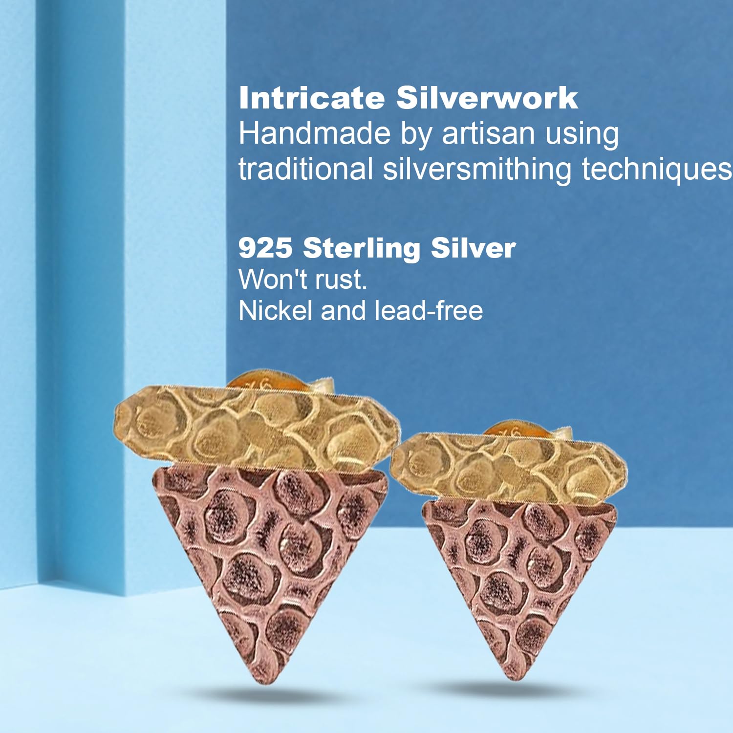 Texture Stud Earring, Rose Gold 925 Sterling Silver Earring, Bohemian Earring mothers day gifts