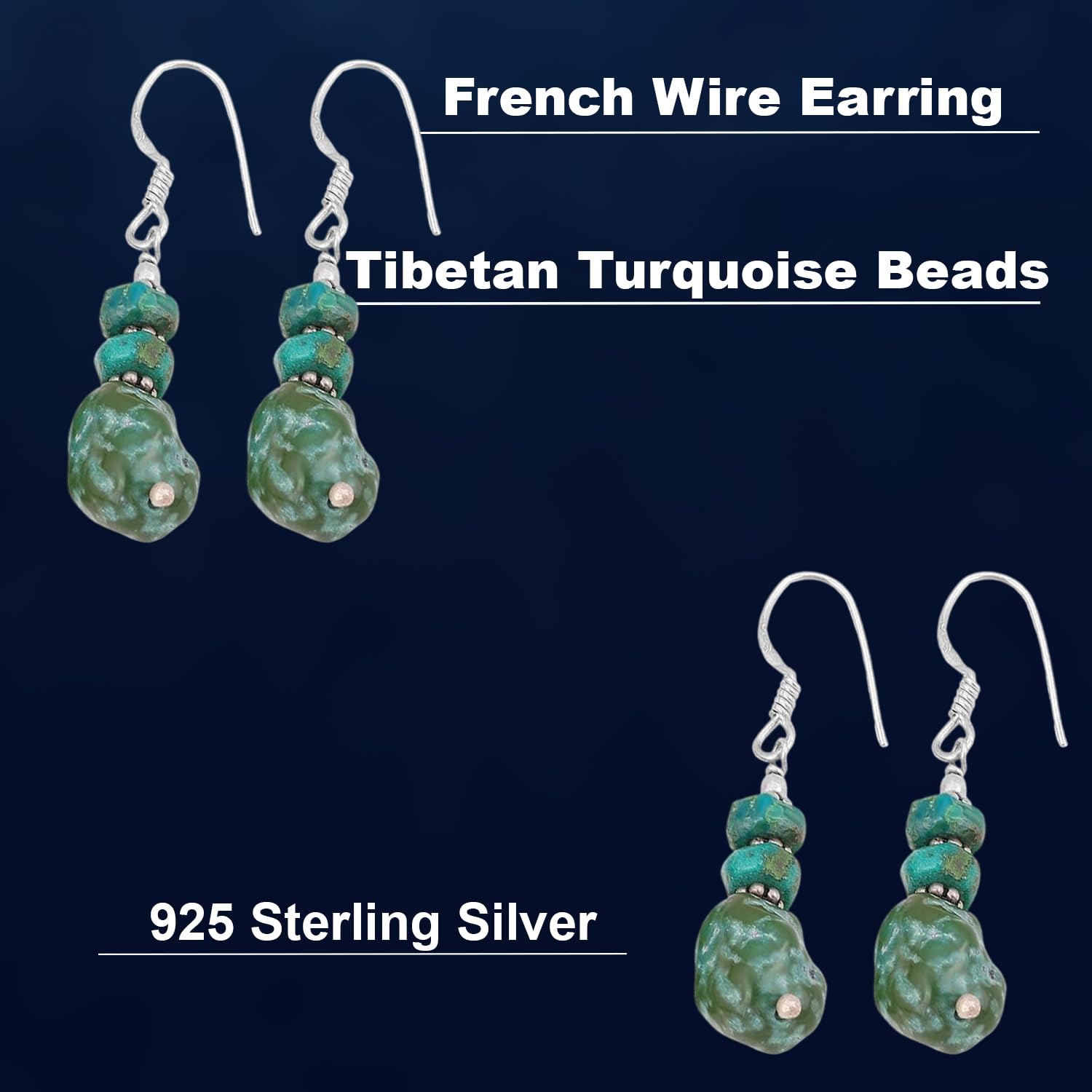 Tibetan Turquoise Beads Earring, Handmade Earring For Women, 925 Sterling Silver Earrings mothers day gifts