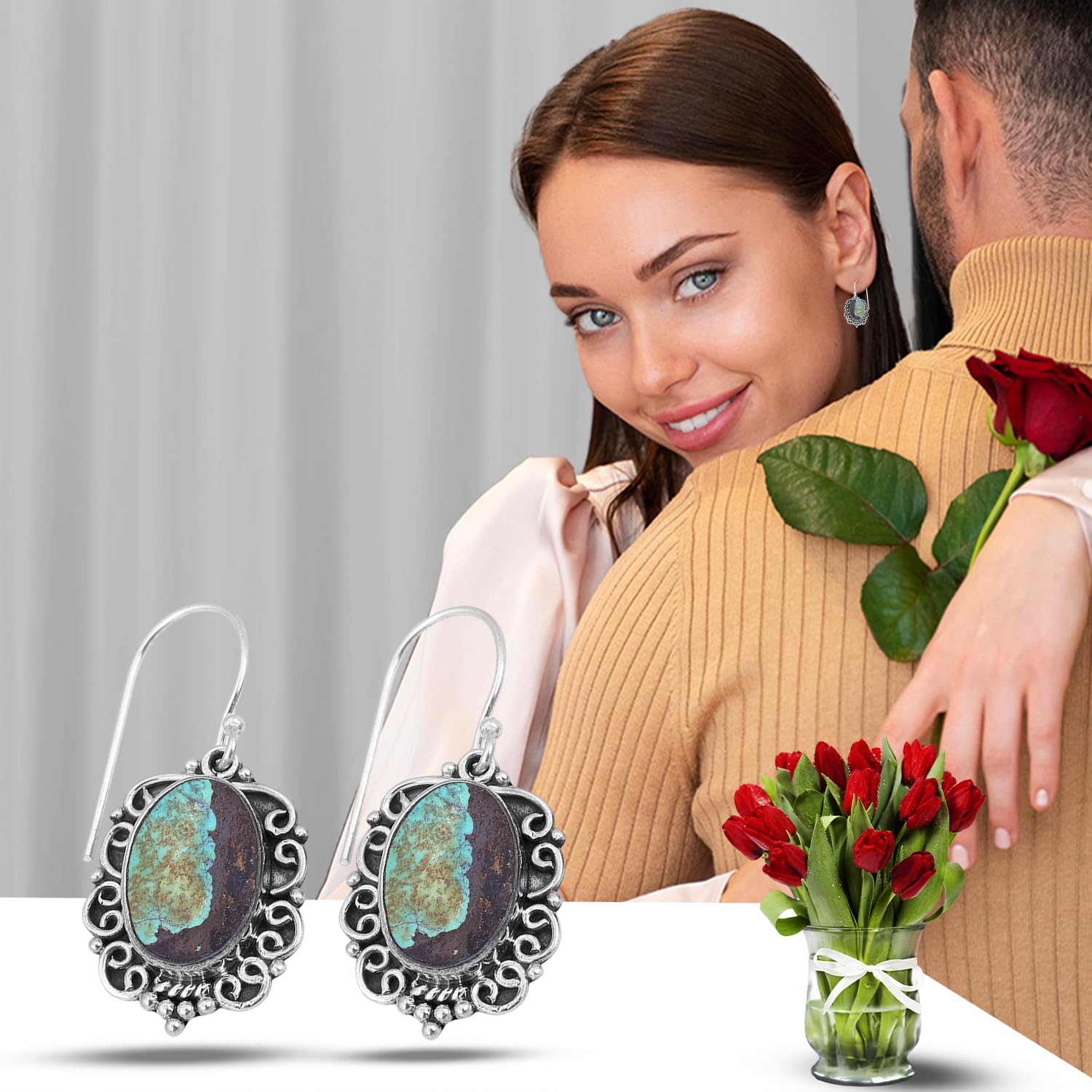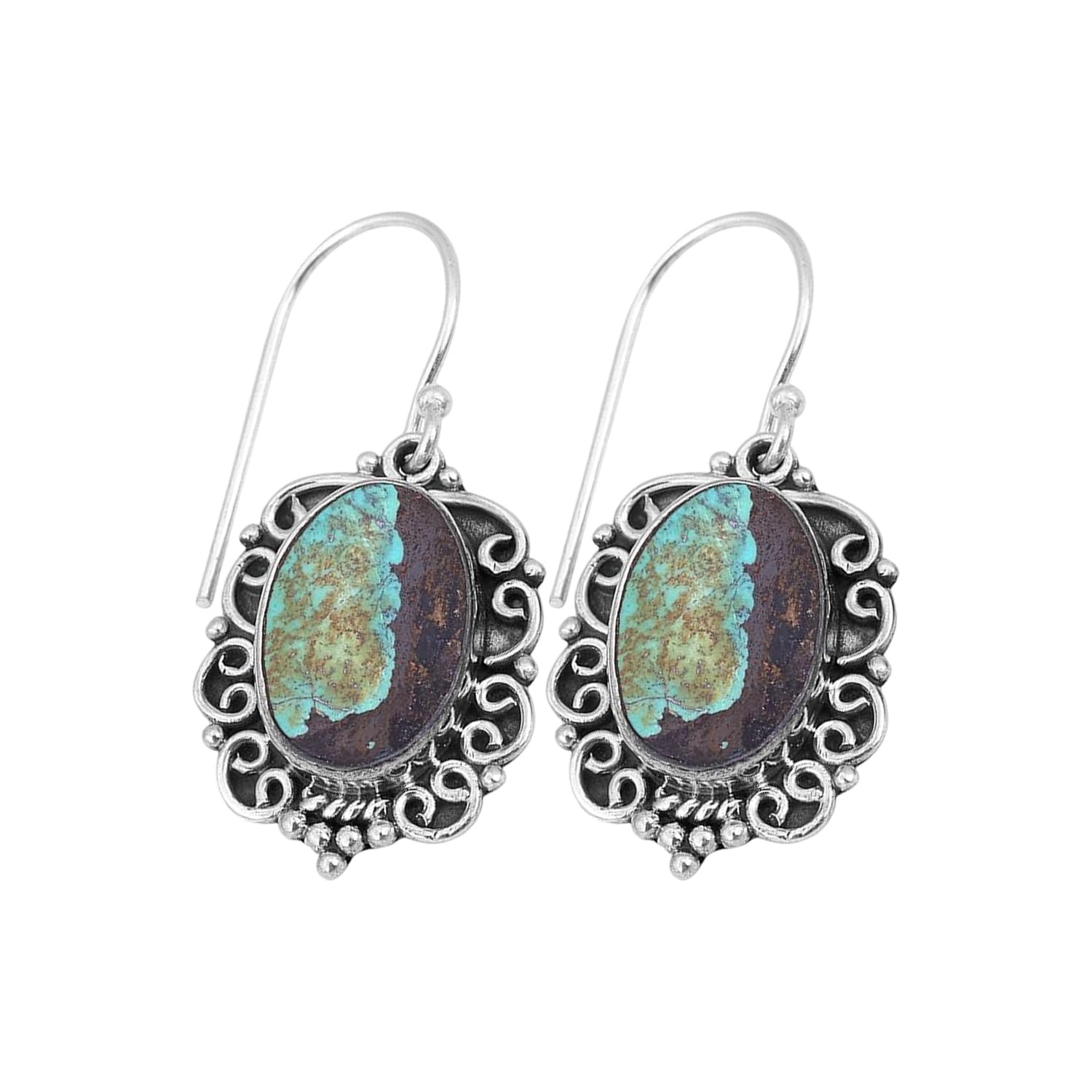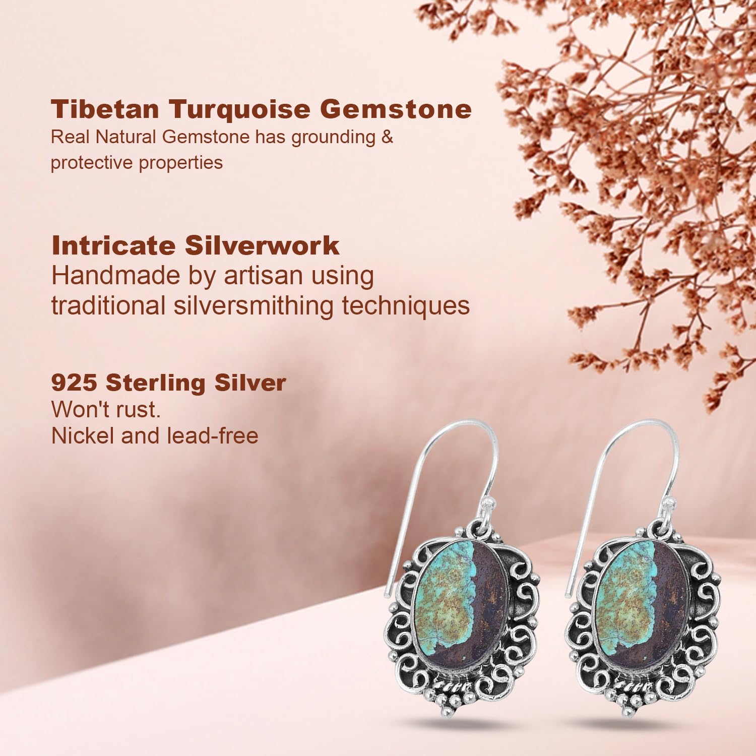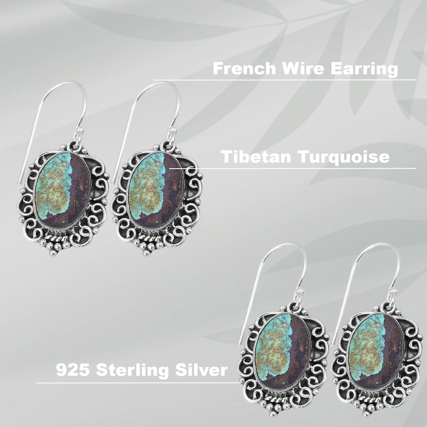 Avoid direct contact with water, perfumes, and harsh chemicals. Store in a dry pouch when not in use.These graceful Tibetan Turquoise?Earring ?Dangle Earrings in 925 Sterling Silver Earring? Earring bring an elegant drop of calm to your look. Known as the stone of intuition,Tibetan Turquoise helps soothe the mind and spirit. Handcrafted in Jaipur with ethically sourced stones and artisan techniques, they’re a go-to for special moments or subtle daily sparkle.