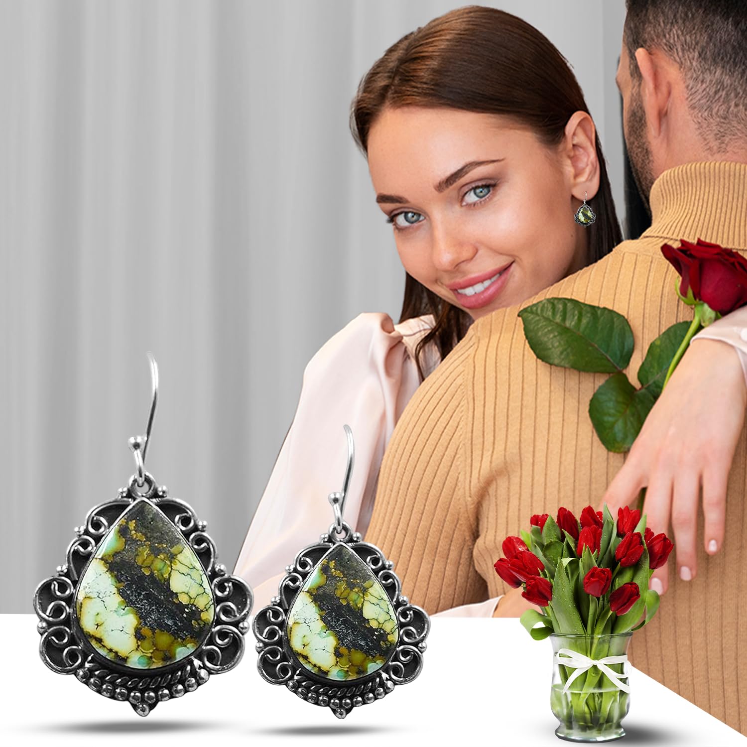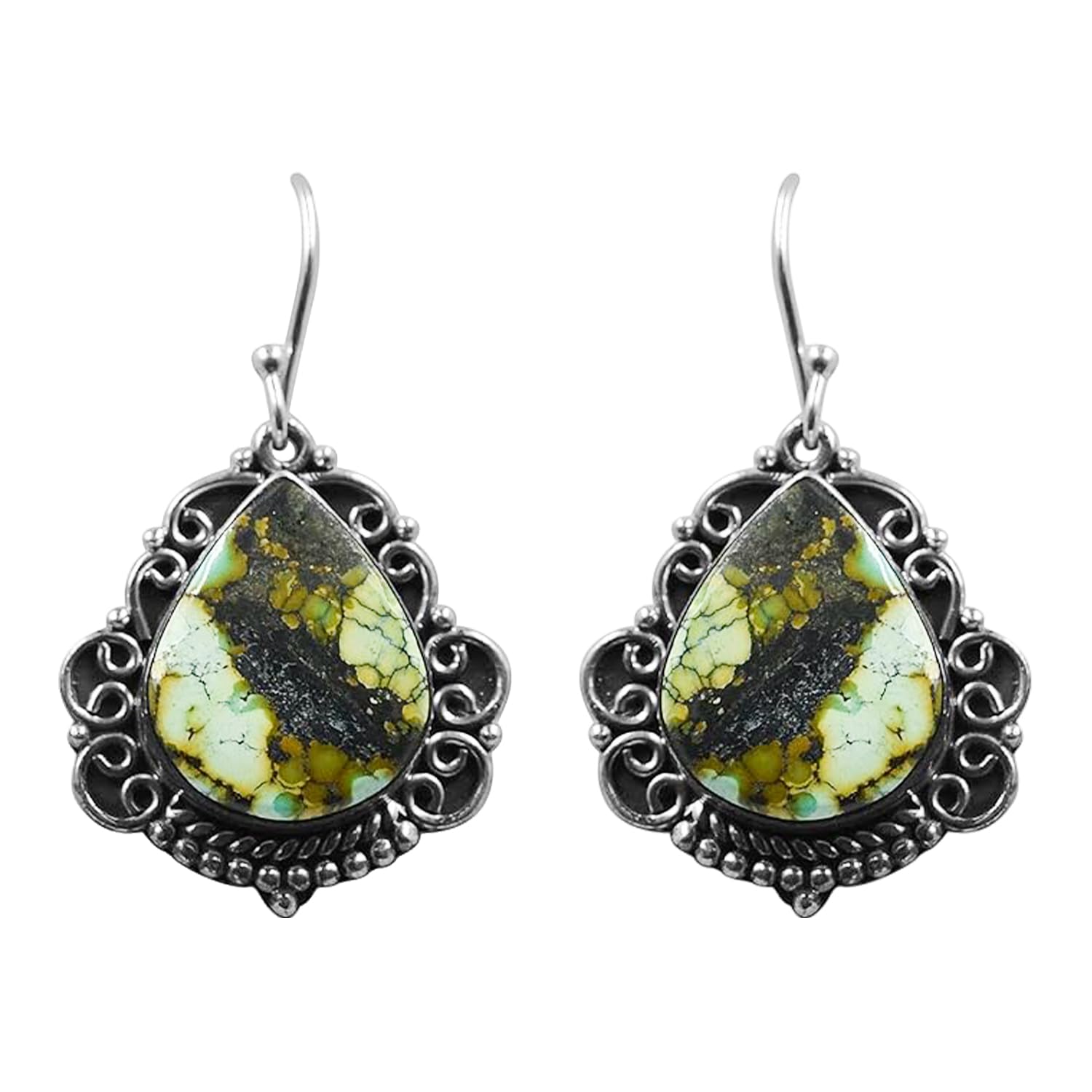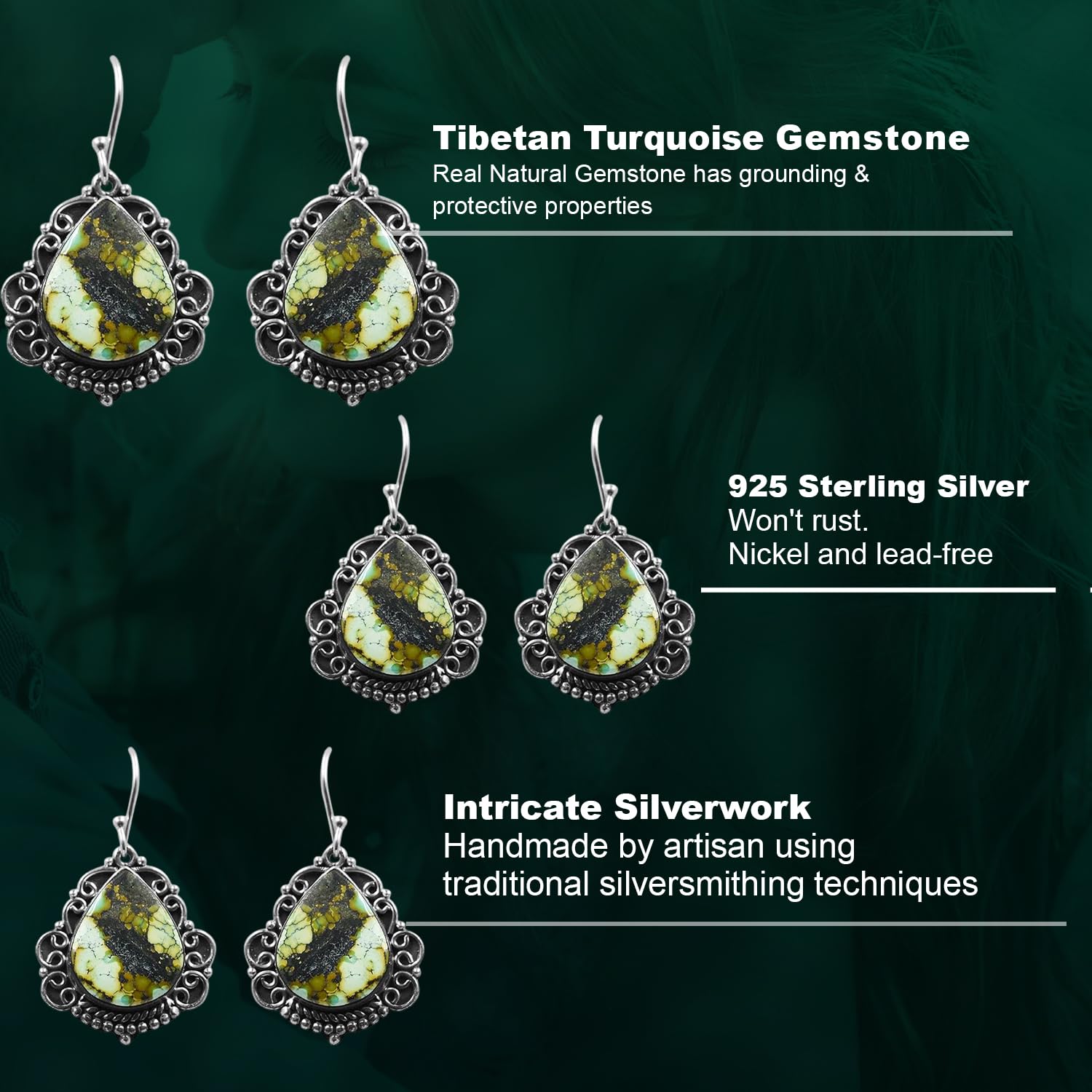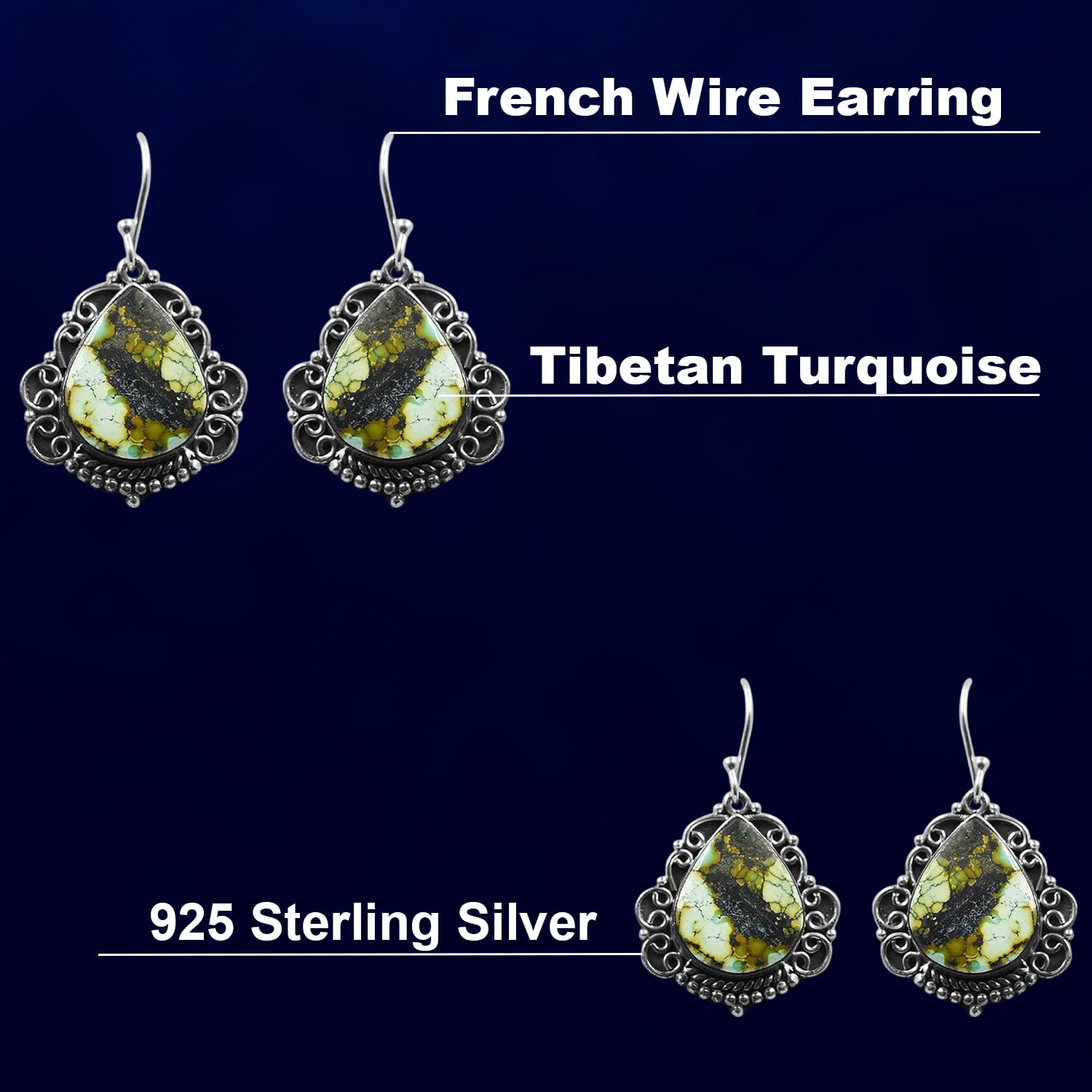Tibetan Turquoise Earring, Women Earring Dangle, Healing Crystal Earring, 925 Sterling Silver Jewelry
