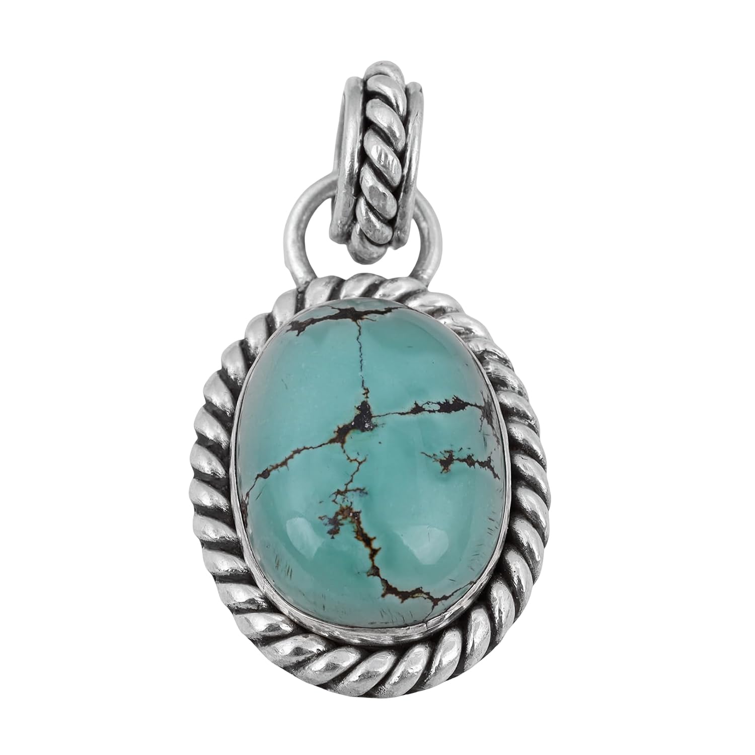 Tibetan Turquoise Pendant Twisted Wire 925 Sterling Silver Handmade Statement Pendant mothers day gifts