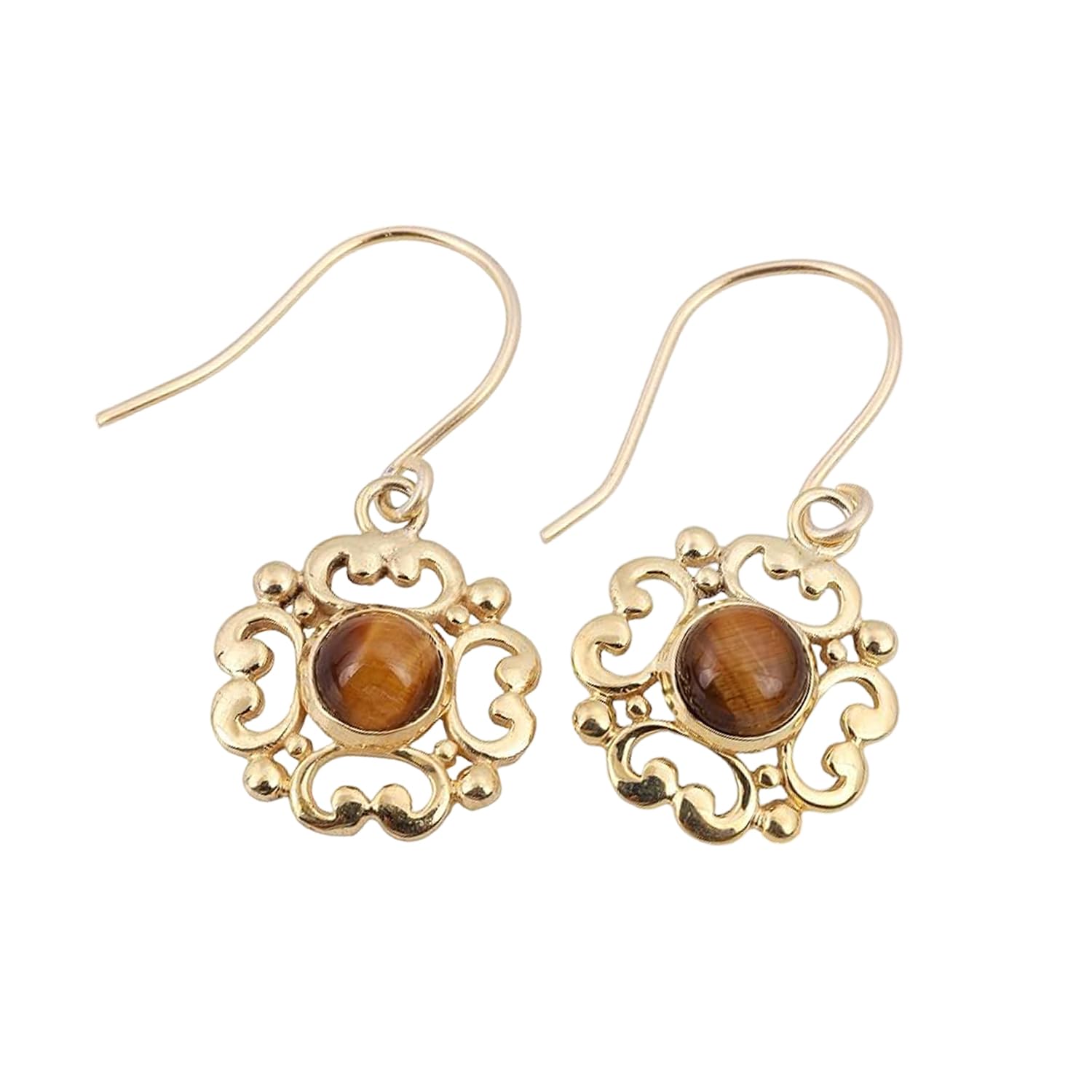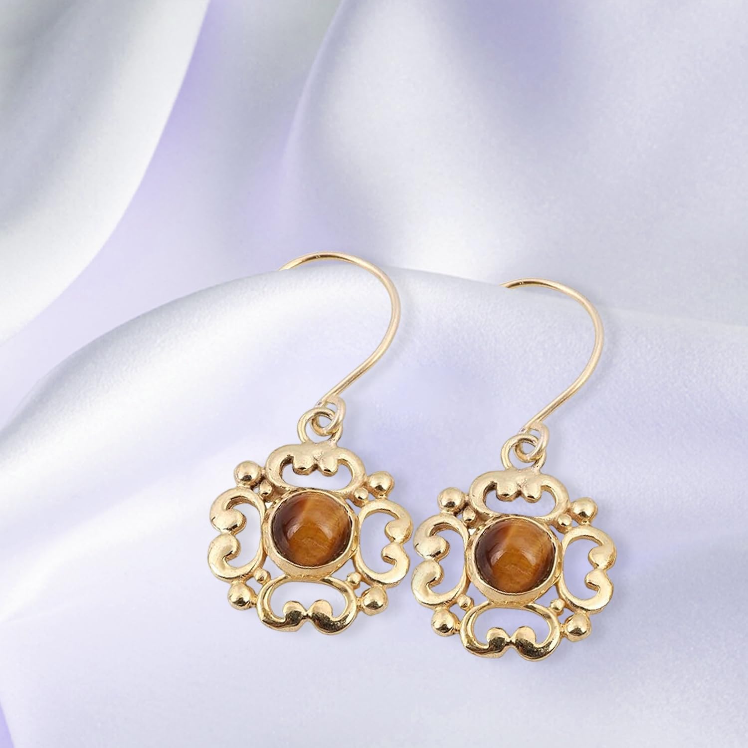 Tiger Eye Earring Traditional Earring Jewelry Yellow Gold Brass Earring Bohemian Earring mothers day gifts