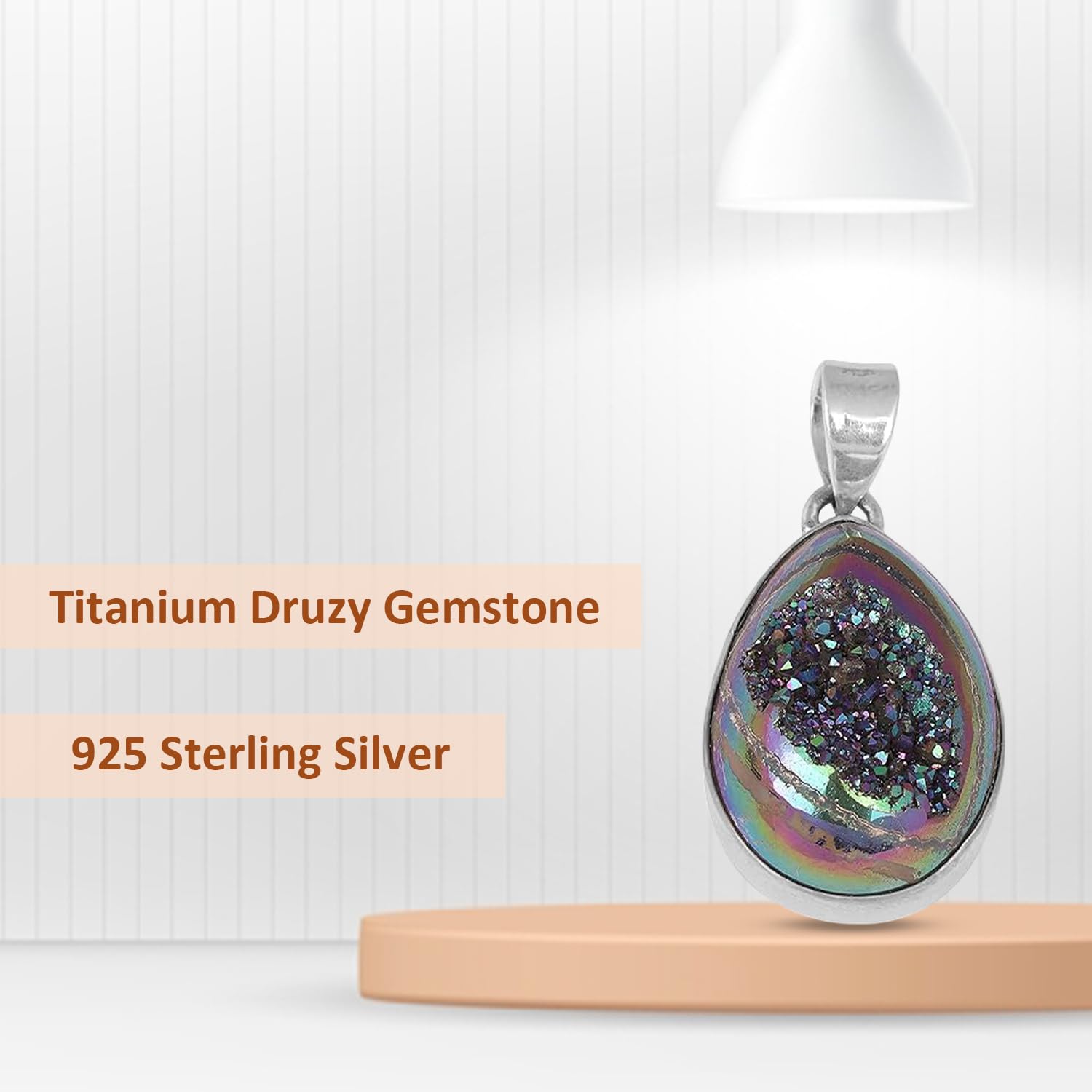 Titanium Druzy Pendant, 925 Sterling Silver Gemstone Pendant, Boho Pendants, Gift For Her