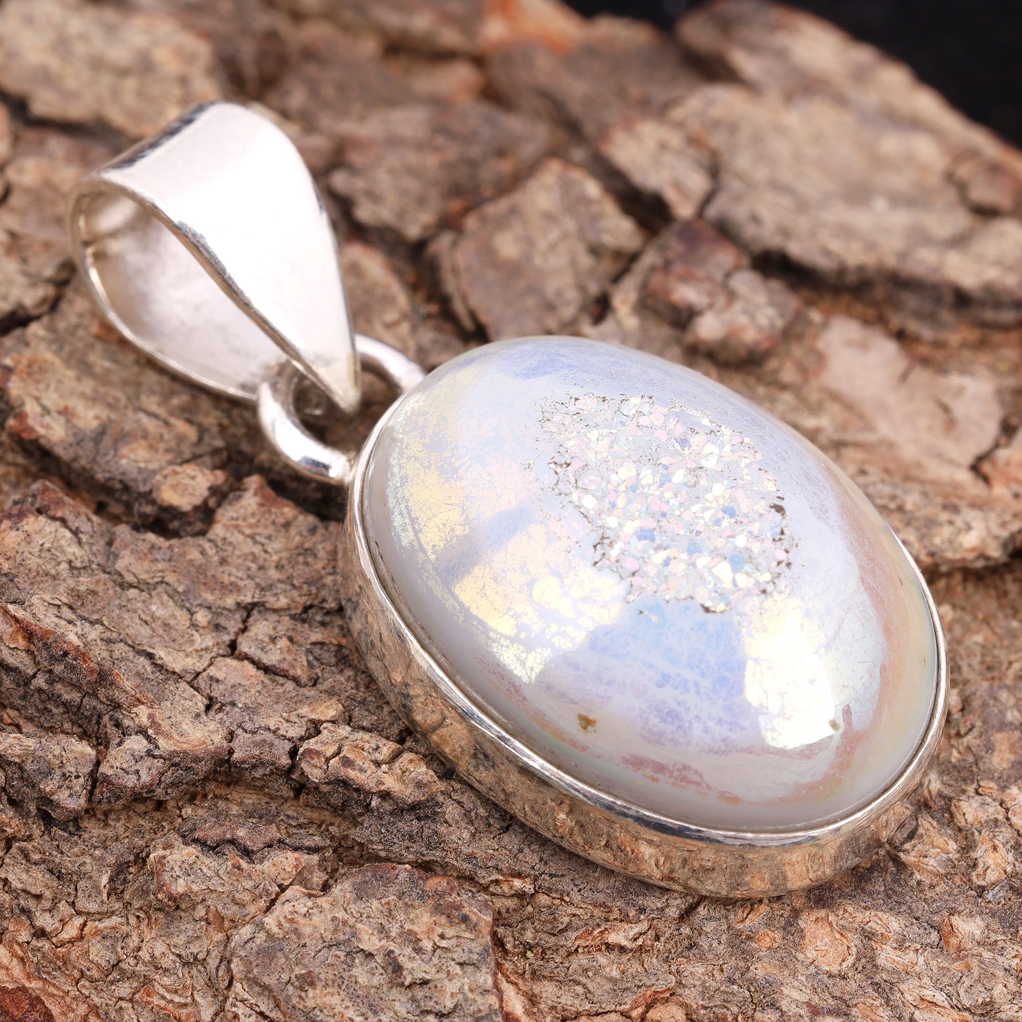 Titanium Druzy Pendant, 925 Sterling Silver Handmade Pendant, Gift For Women