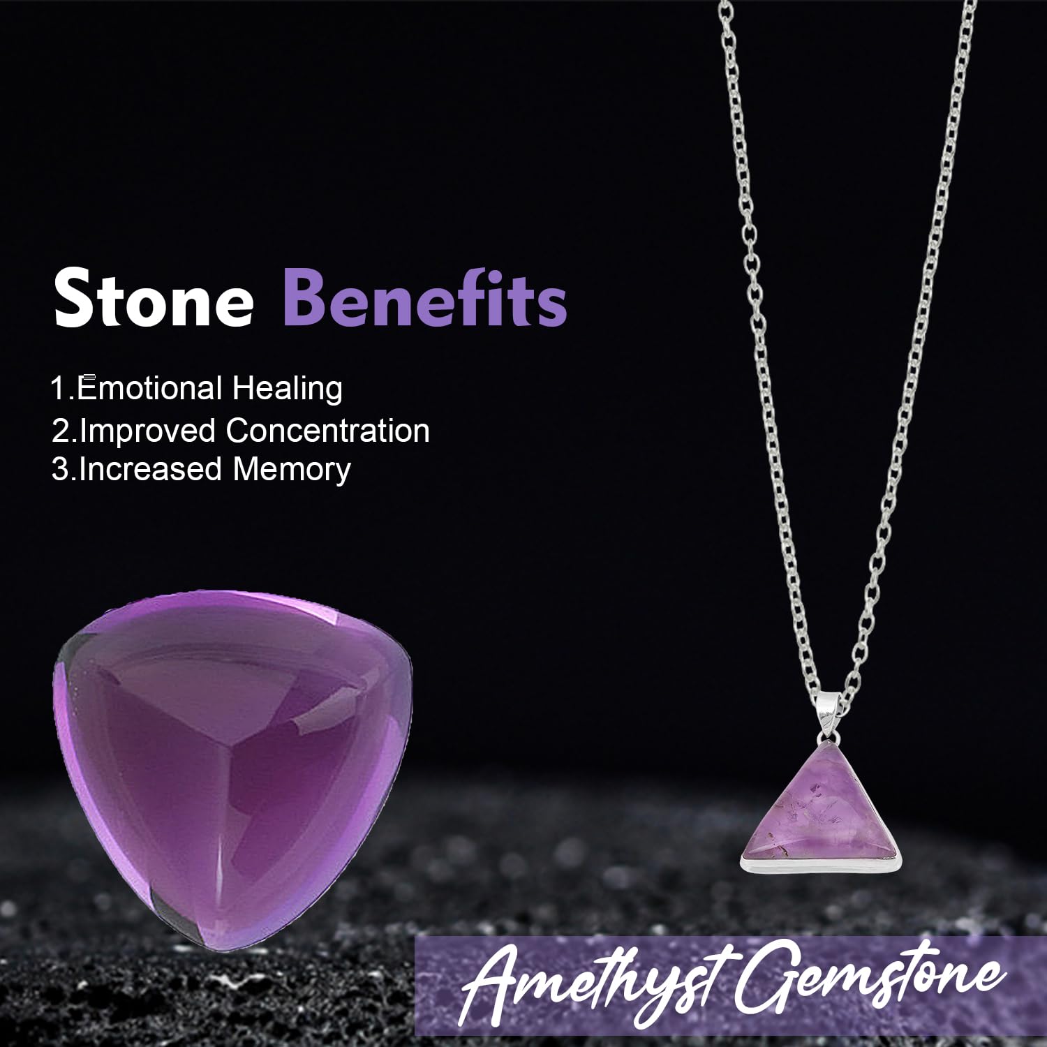 Trillion Amethyst Pendant, Chunky Gemstone 925 Sterling Silver Pendant Jewellery