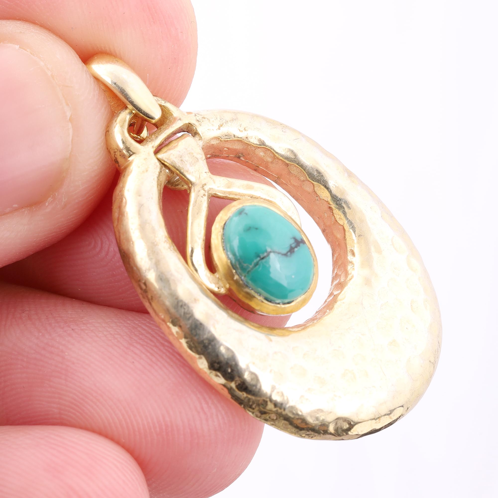 Turquoise Gemstone Pendant For Women Handmade Designer Yellow Gold Brass PendantTurquoise Gemstone Pendant For Women Handmade Designer Yellow Gold Brass Pendant