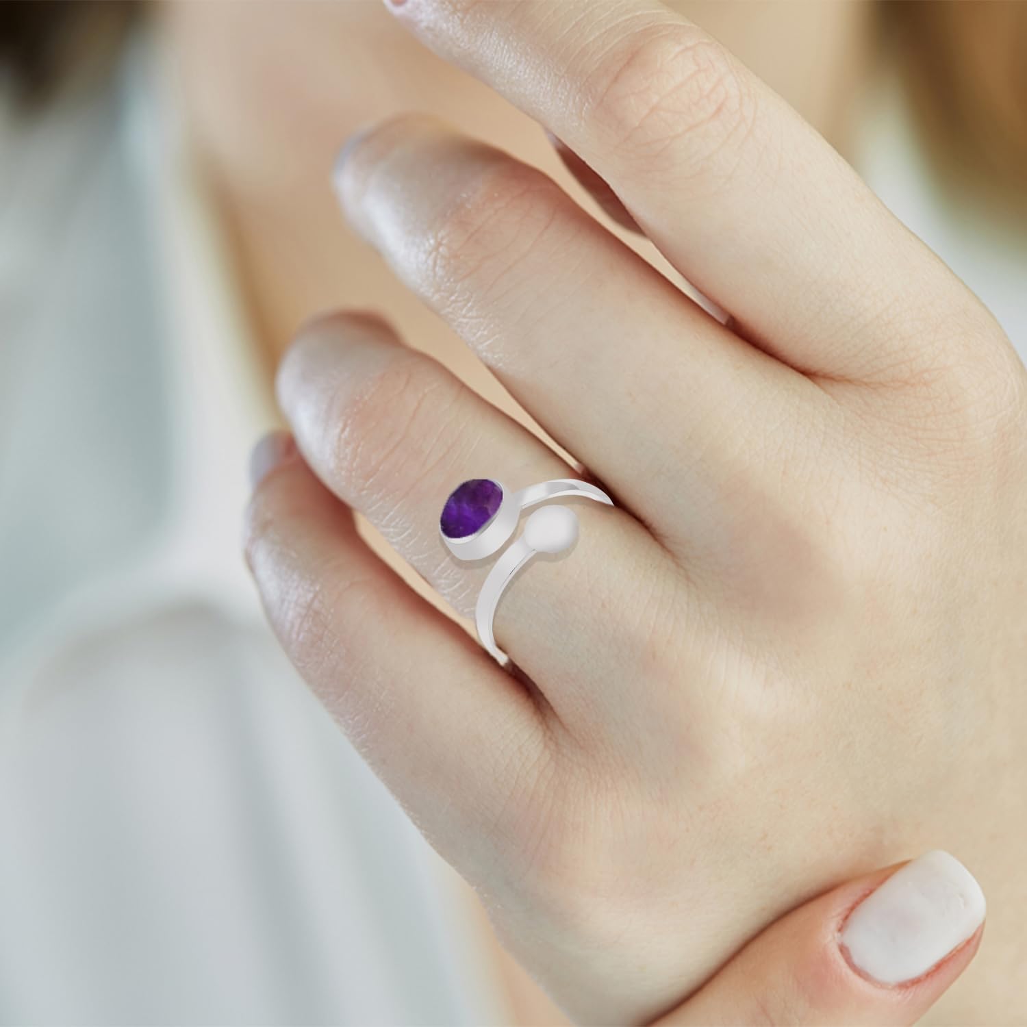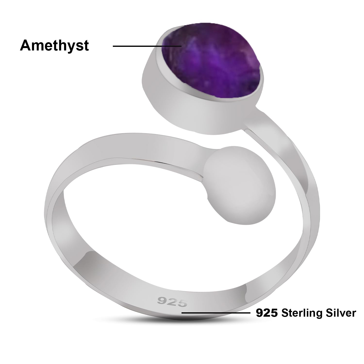 Elevate your jewelry collection with the Meadows Amethyst Adjustable Ring. Crafted from high-quality 925 Sterling Silver, this handmade open wrap ring features a stunning natural Amethyst stone. Known for its properties of peace, balance, spiritual protection, this gemstone ring is as meaningful as it is beautiful. Designed to fit all finger sizes comfortably, it’s perfect for everyday wear or as a thoughtful gift for someone special.