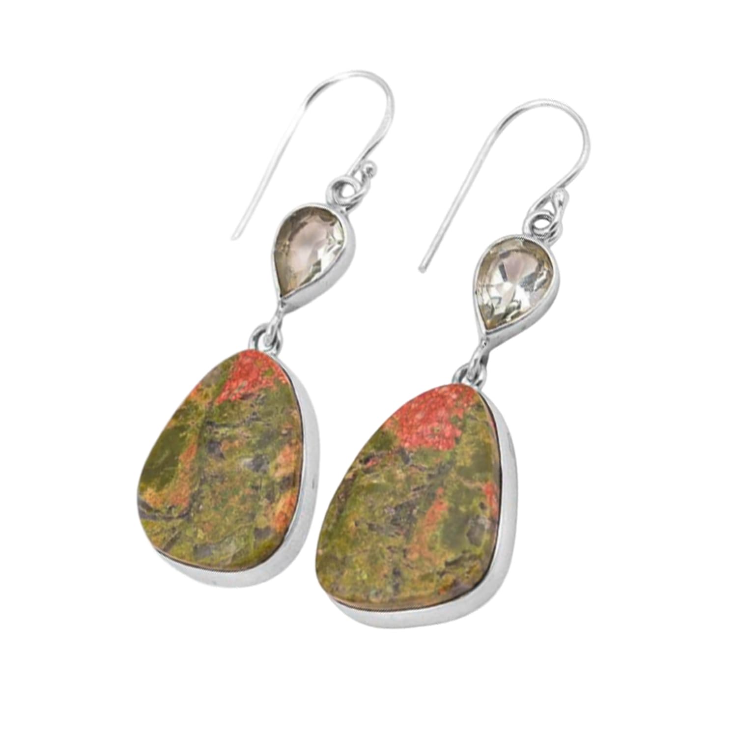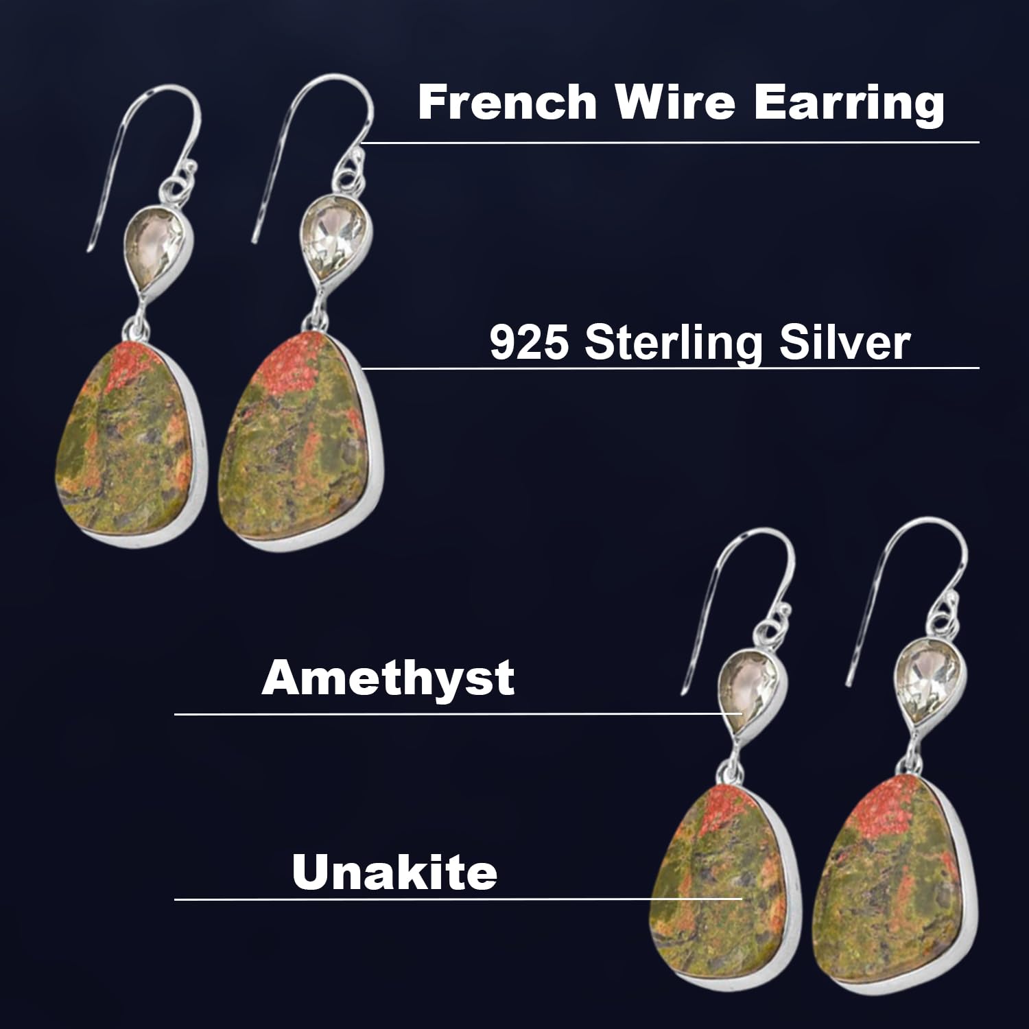 Unakite & Amethyst Earring, 925 Sterling Silver Earring, Bohemian Women Gift Earrings mothers day gifts
