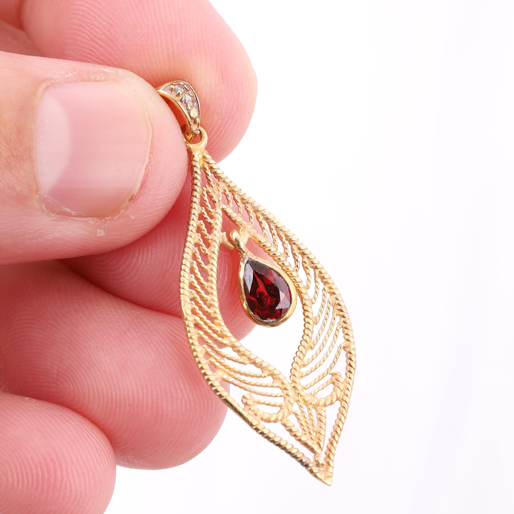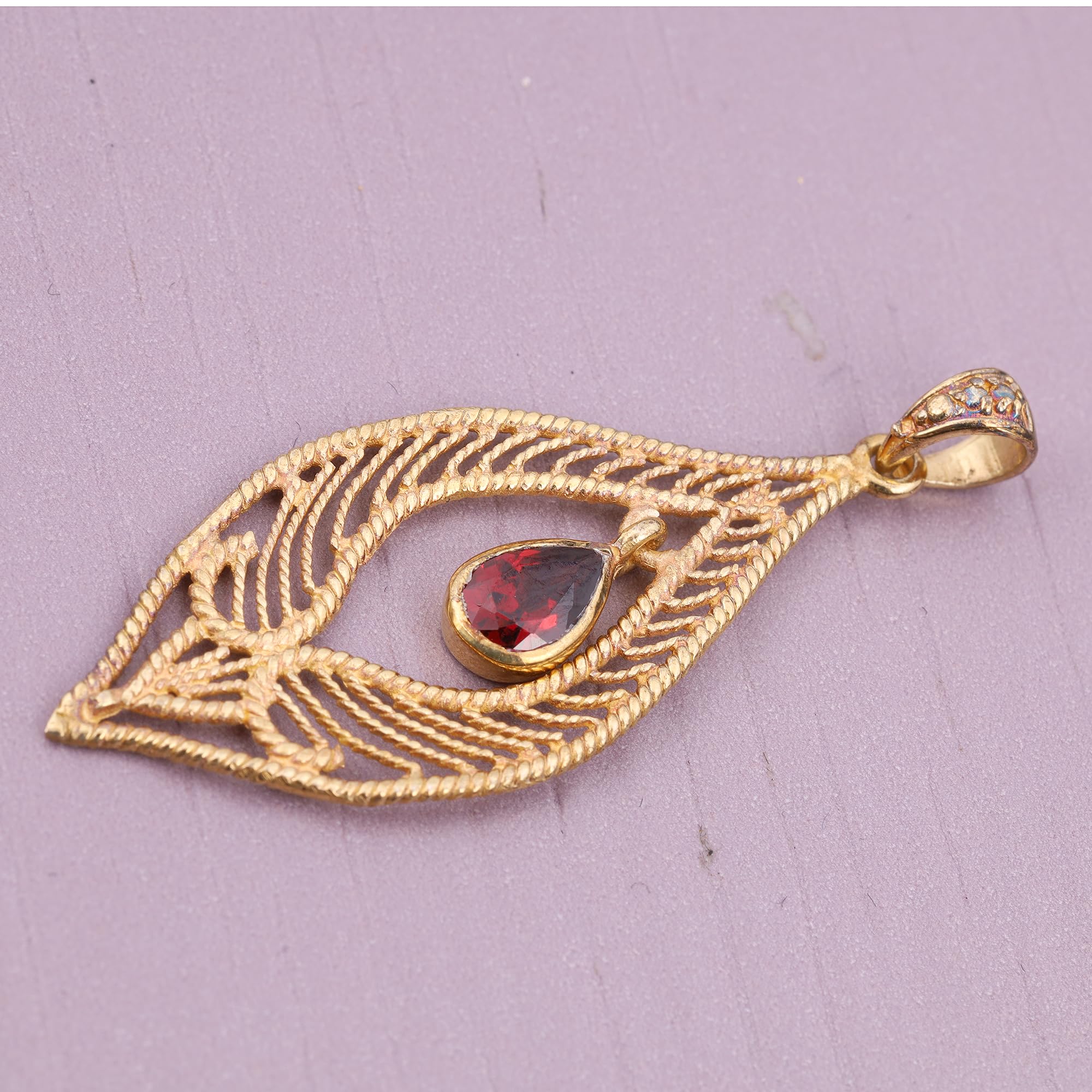 Unique Red Garnet Gemstone Pendant For Women Yellow Gold Brass Pendant Fashion Jewelry