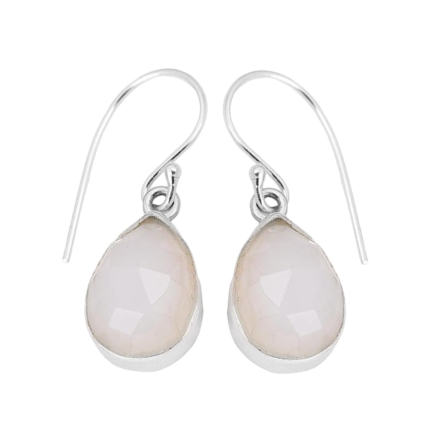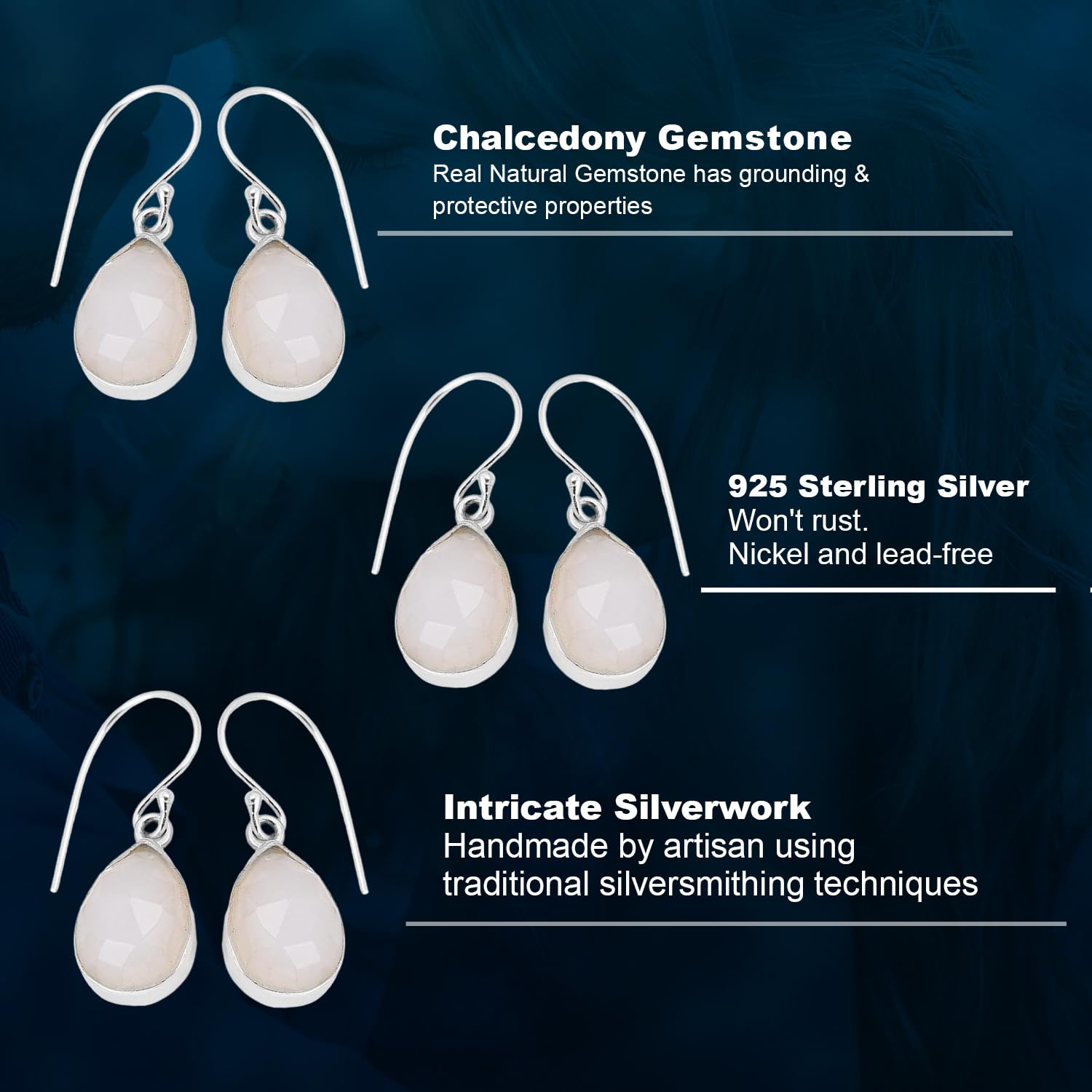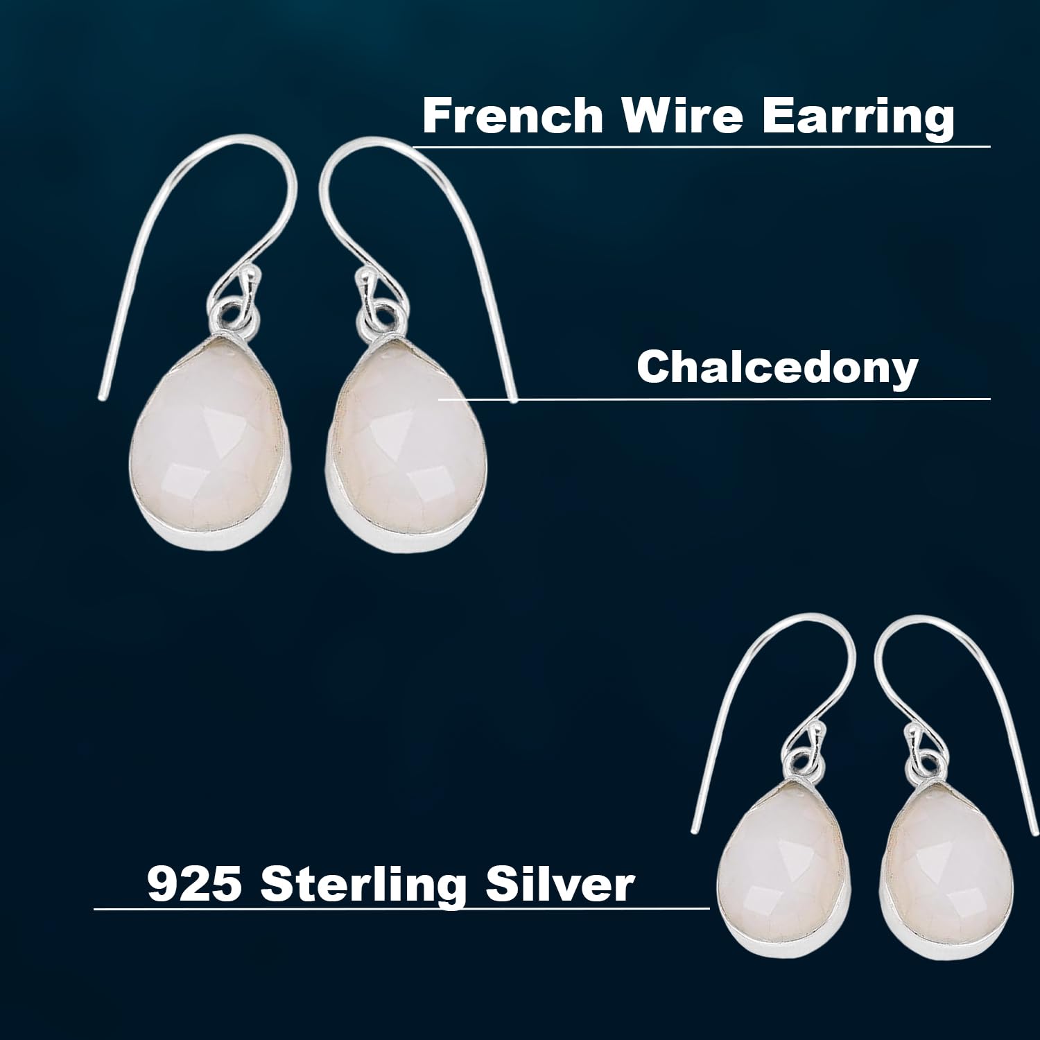 White Chalcedony Earring, Healing Crystal Earring, 925 Sterling Silver Earring, Bohemian Earring mothers day gifts