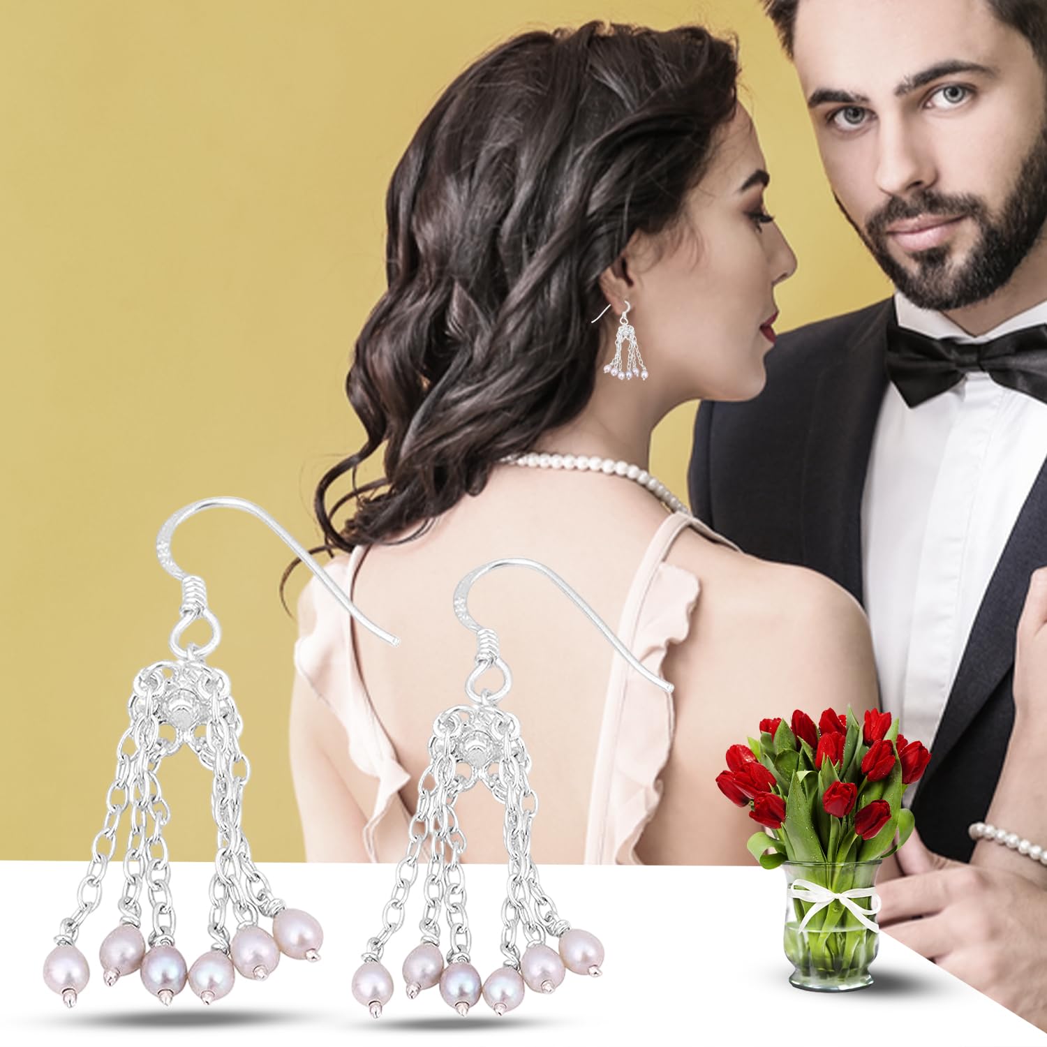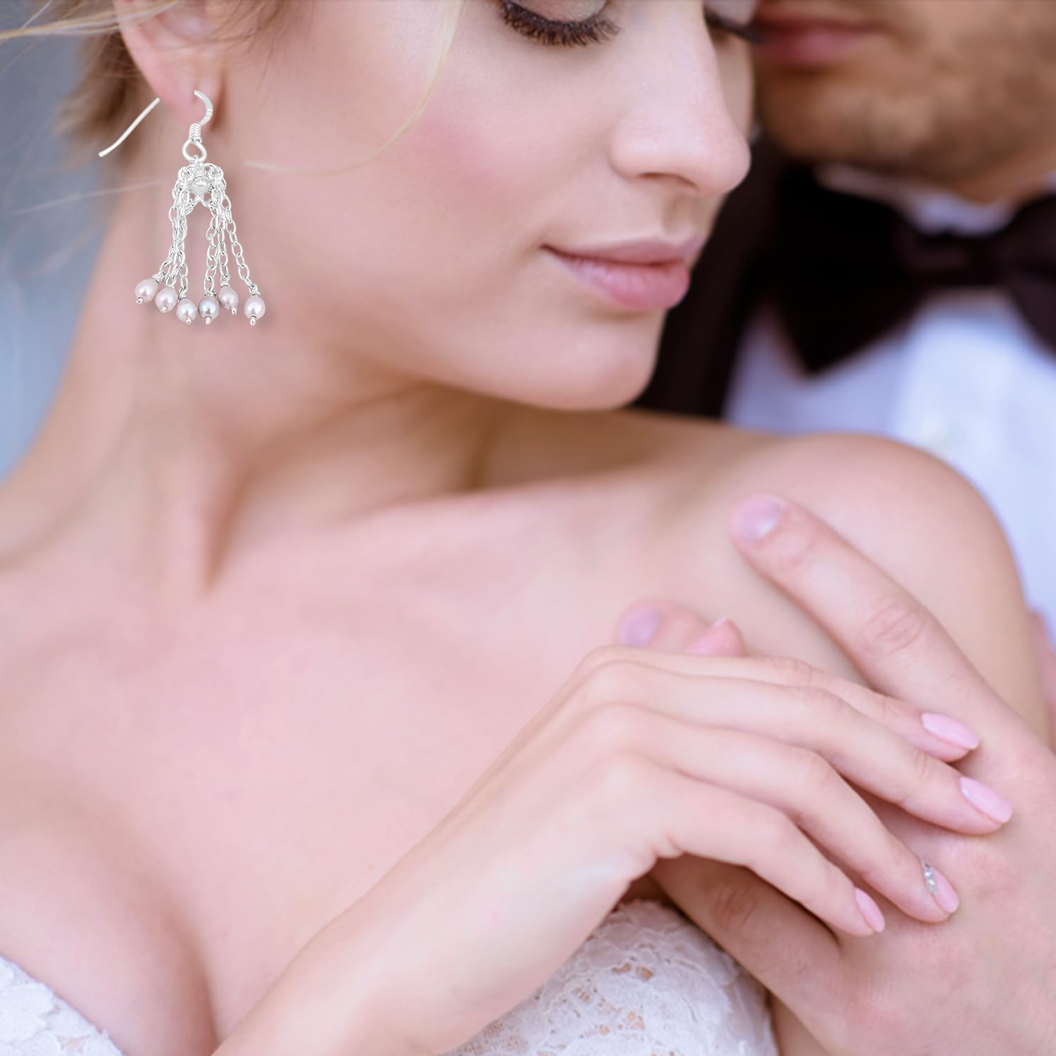 White Pearl Beads Earring, Designer 925 Sterling Silver Earring, Bohemian Earrings mothers day gifts
