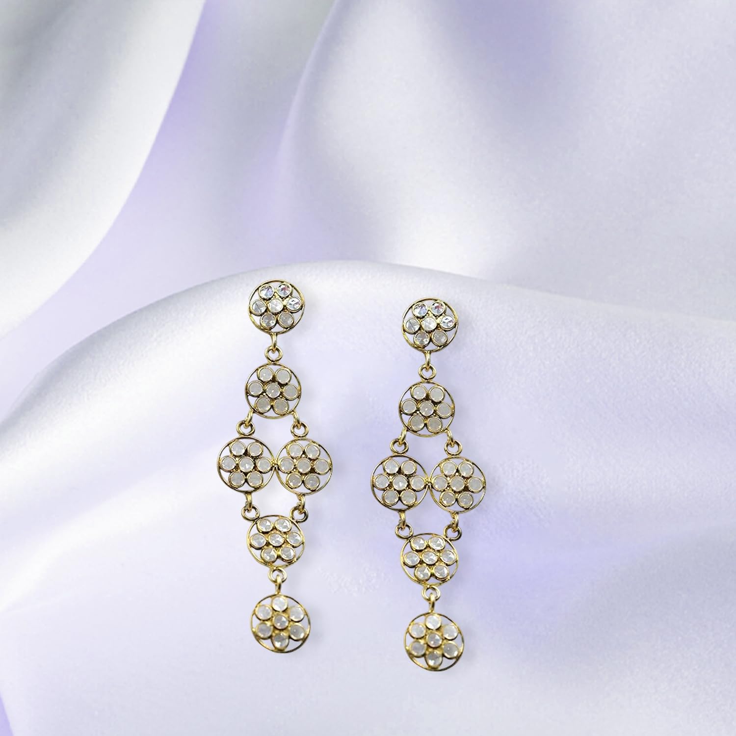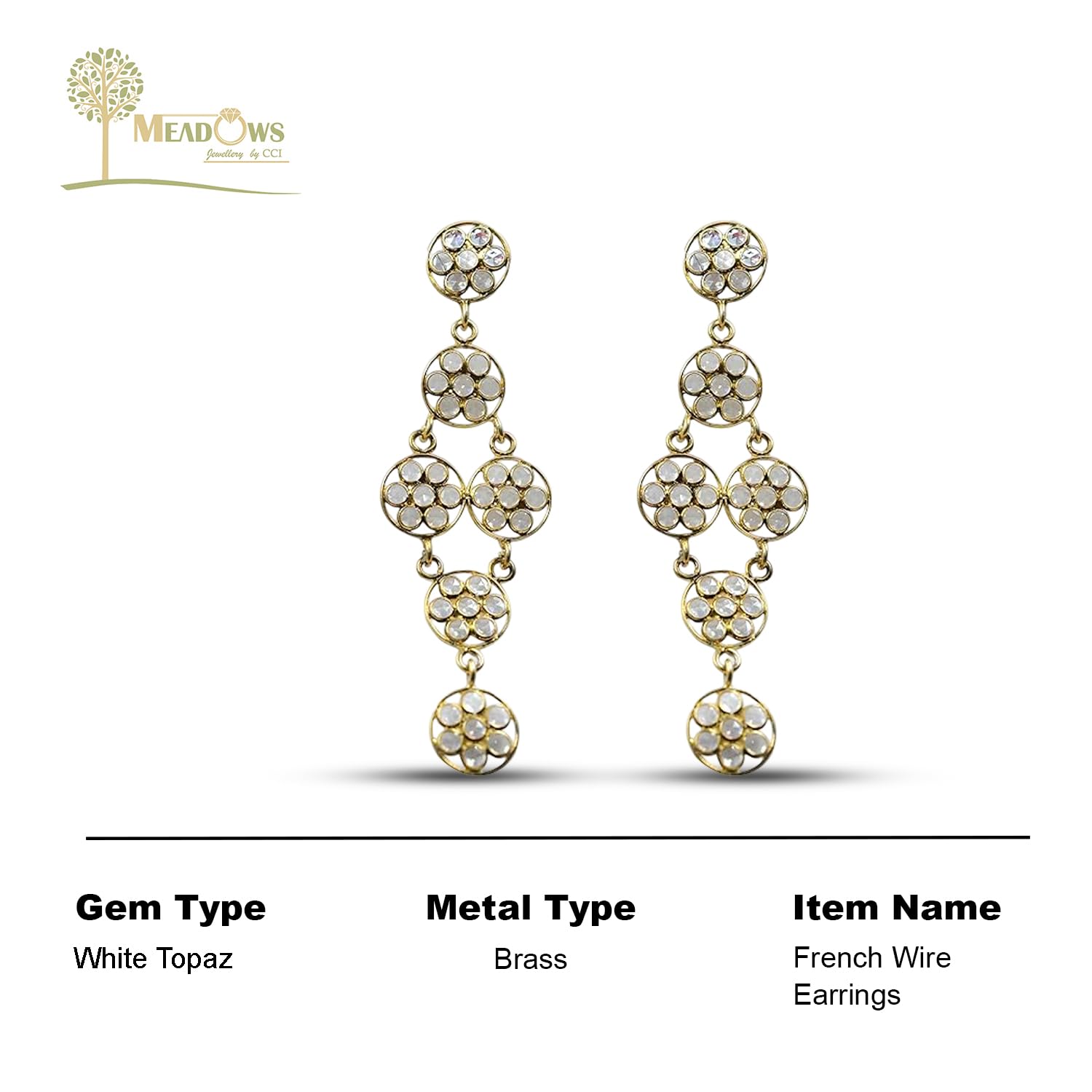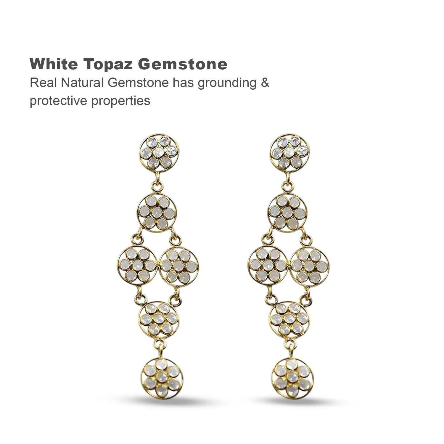 White Topaz Gemstone Earring For Women, Yellow Gold Plated 925 Sterling Silver Earring mothers day gifts