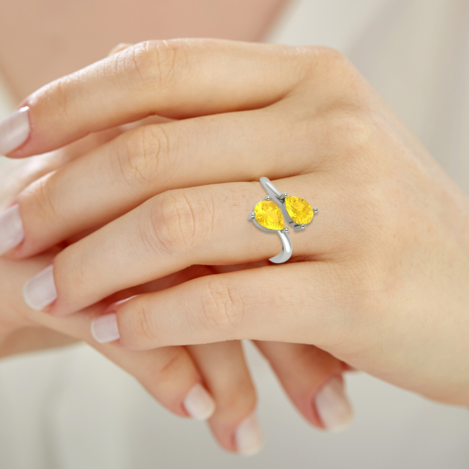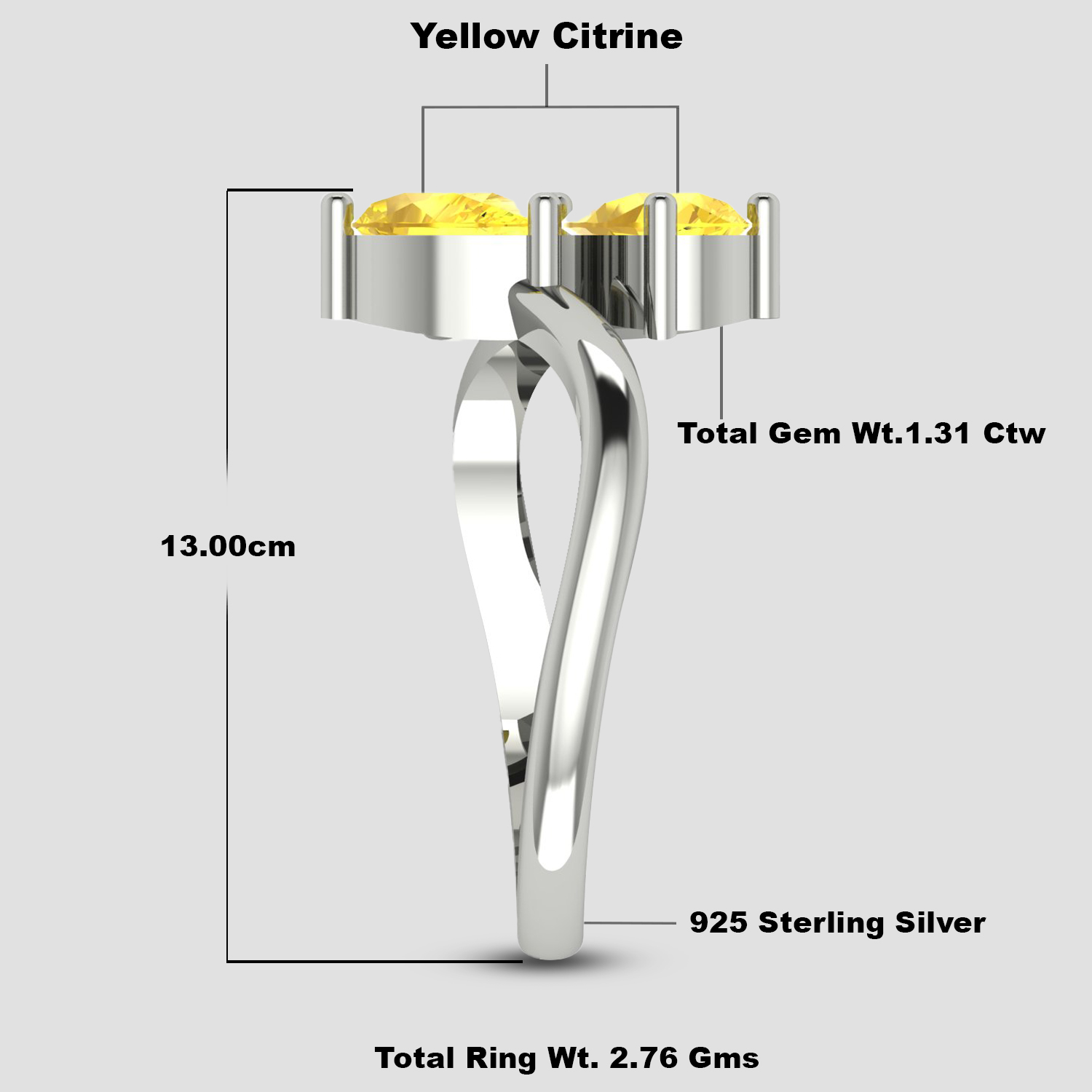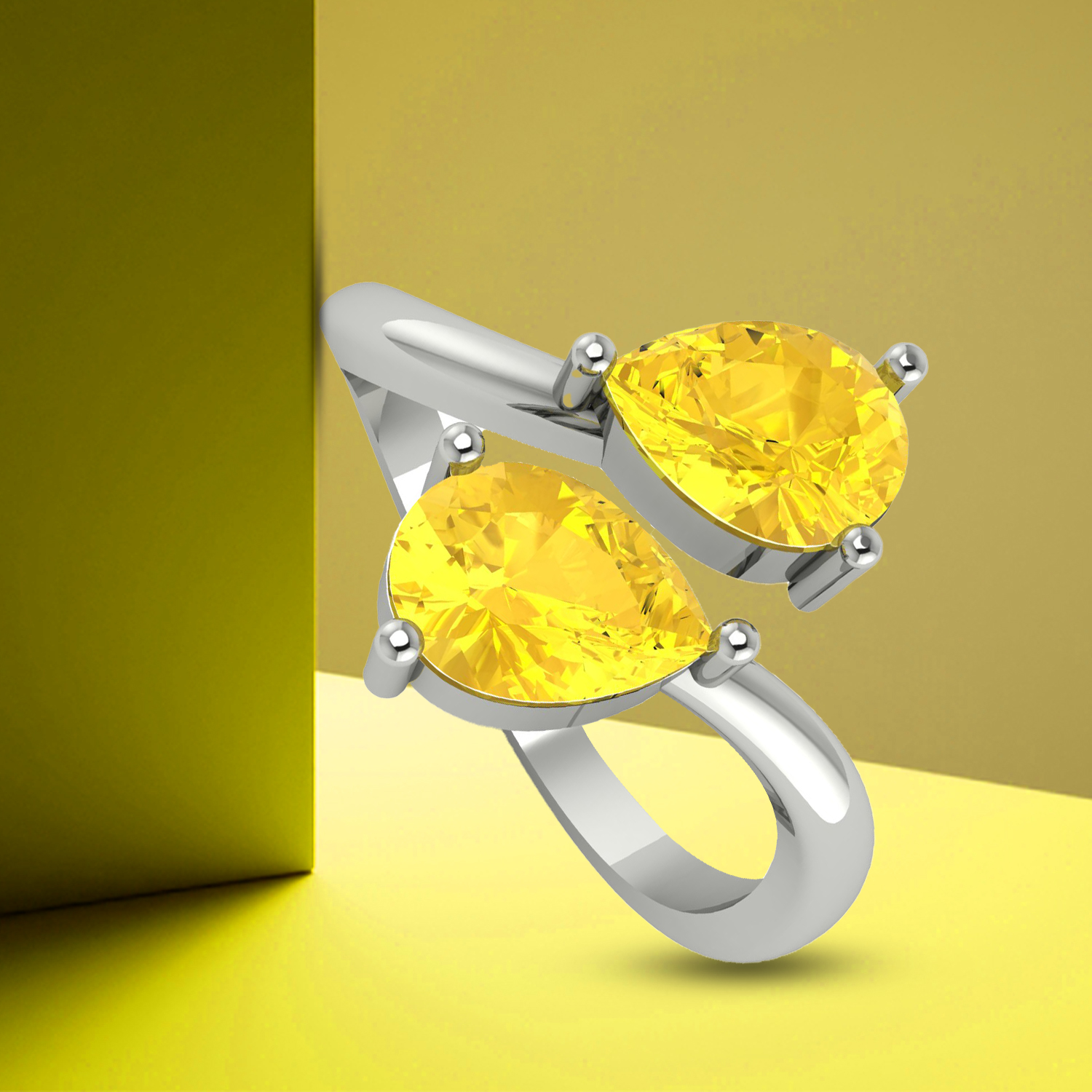 Add a pop of sunshine to your jewelry collection with this Yellow Citrine Adjustable Ring, featuring two brilliant pear-cut citrine stones. The vibrant yellow gemstones exude warmth and elegance, making this piece perfect for both casual and formal wear. The sleek silver band with an open-ended design ensures a comfortable, adjustable fit for various sizes.