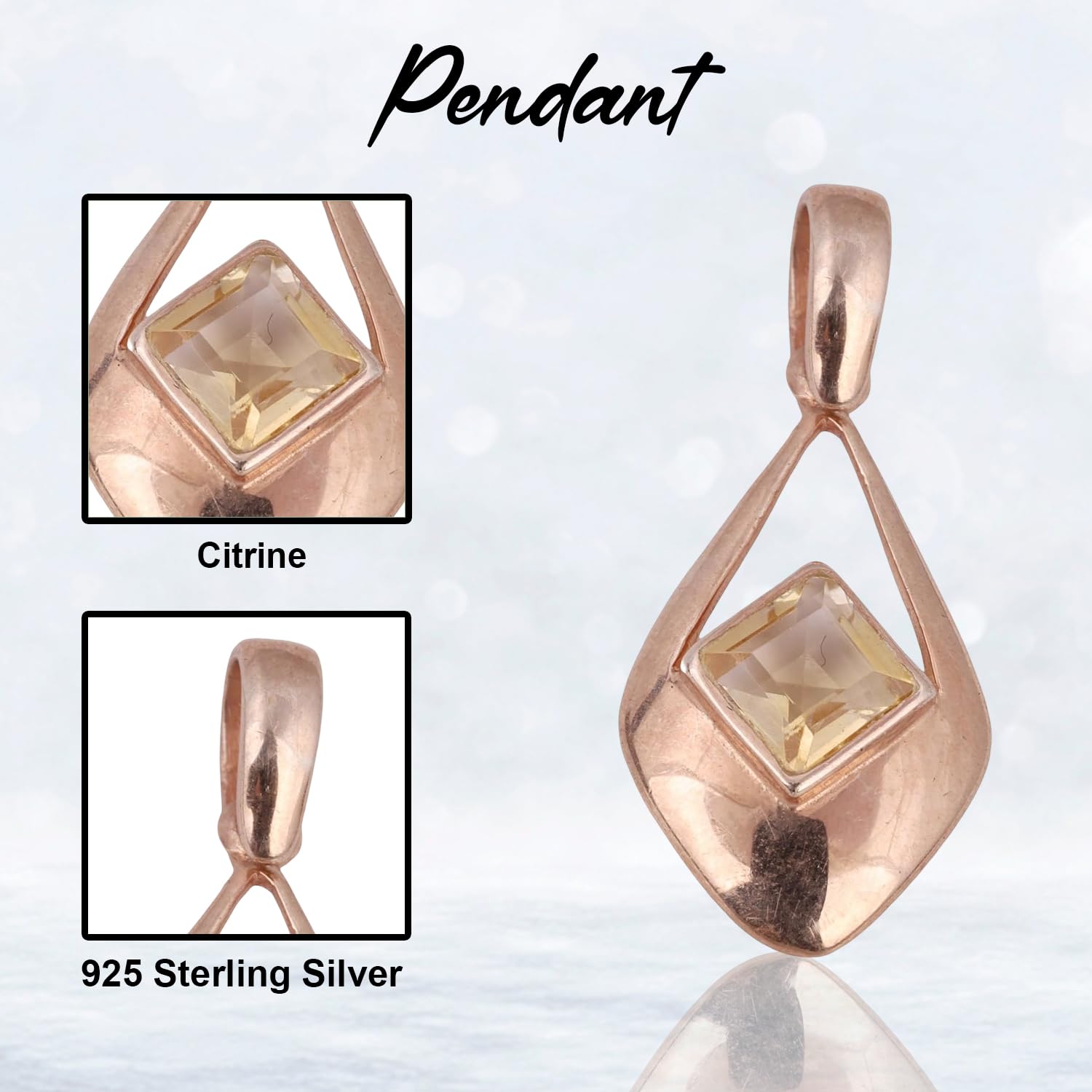 Yellow Citrine Pendant Rose Gold 925 Sterling Silver Handmade Pendant Silver Jewelry mothers day gifts