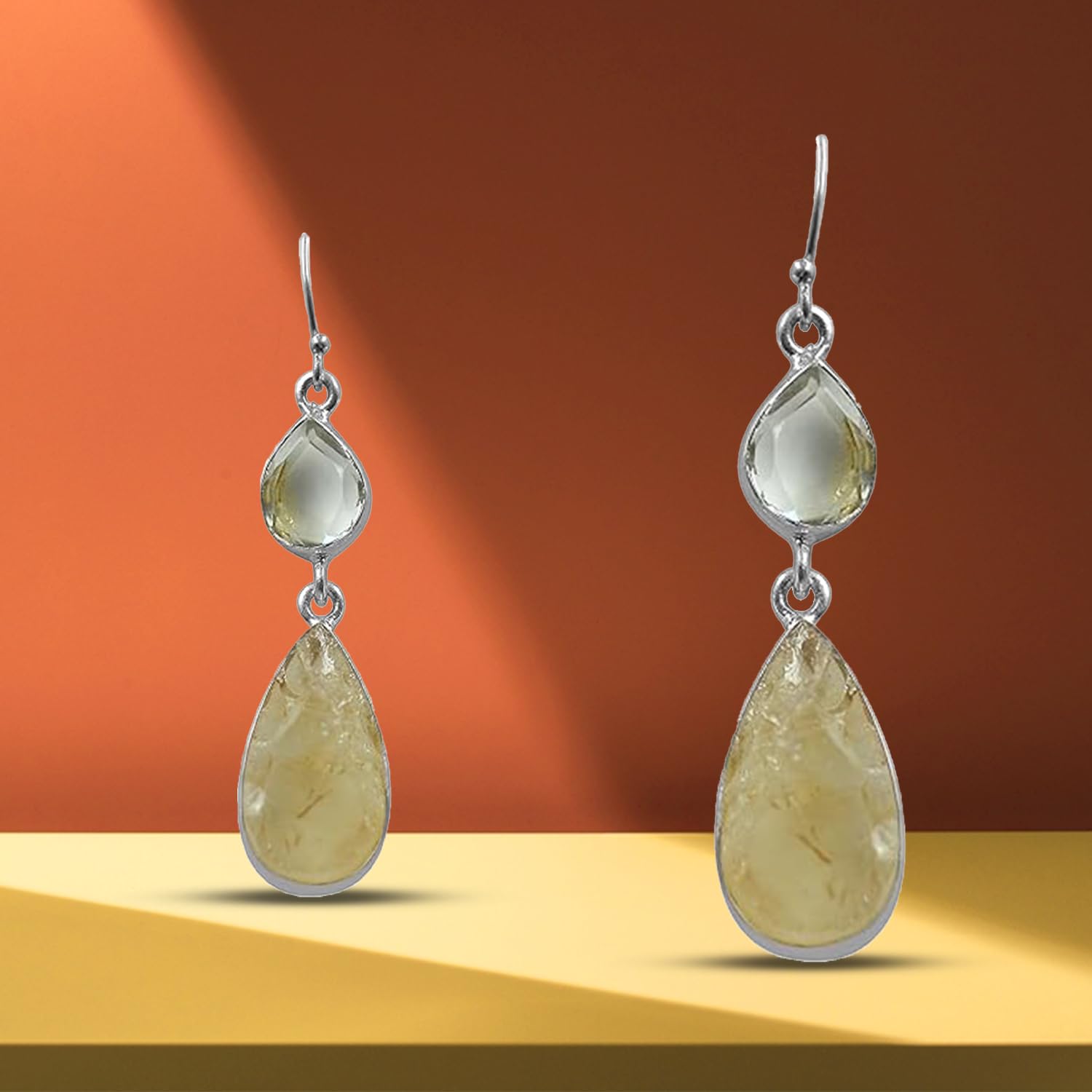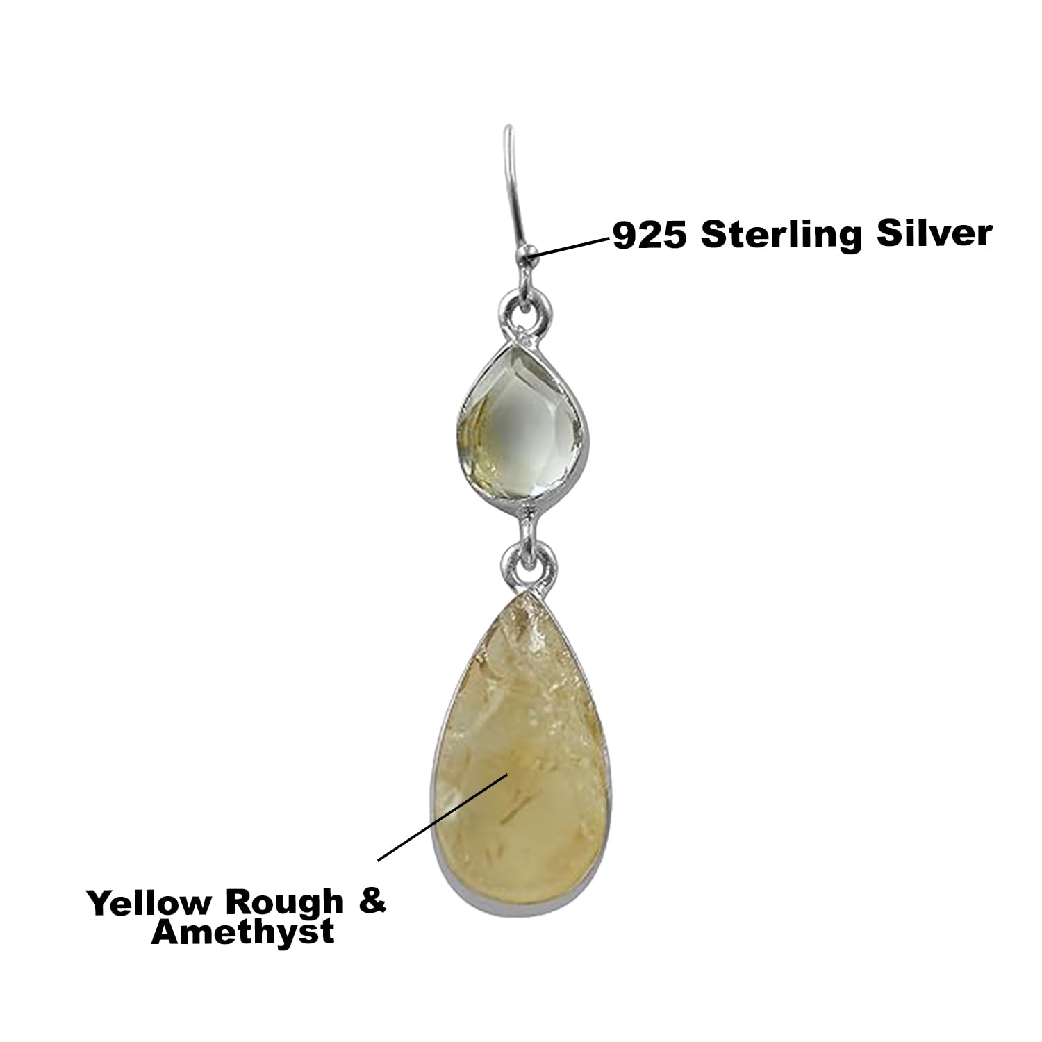 Add movement and magic to your look with these handcrafted Yellow Rough & Amethyst?Dangle Earrings, made with 925 sterling silver?. Inspired by the elegance of Indian craftsmanship, these earrings beautifully sway with every step?making them perfect for both festive occasions and everyday grace.